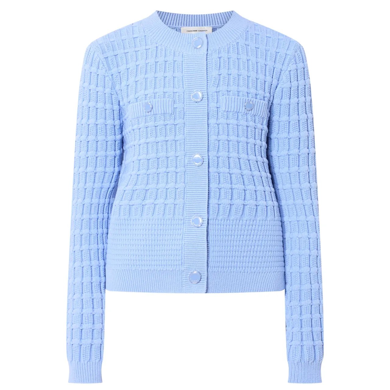 - Textured, long sleeves, crew neckline, button fastenings, ribbed trims