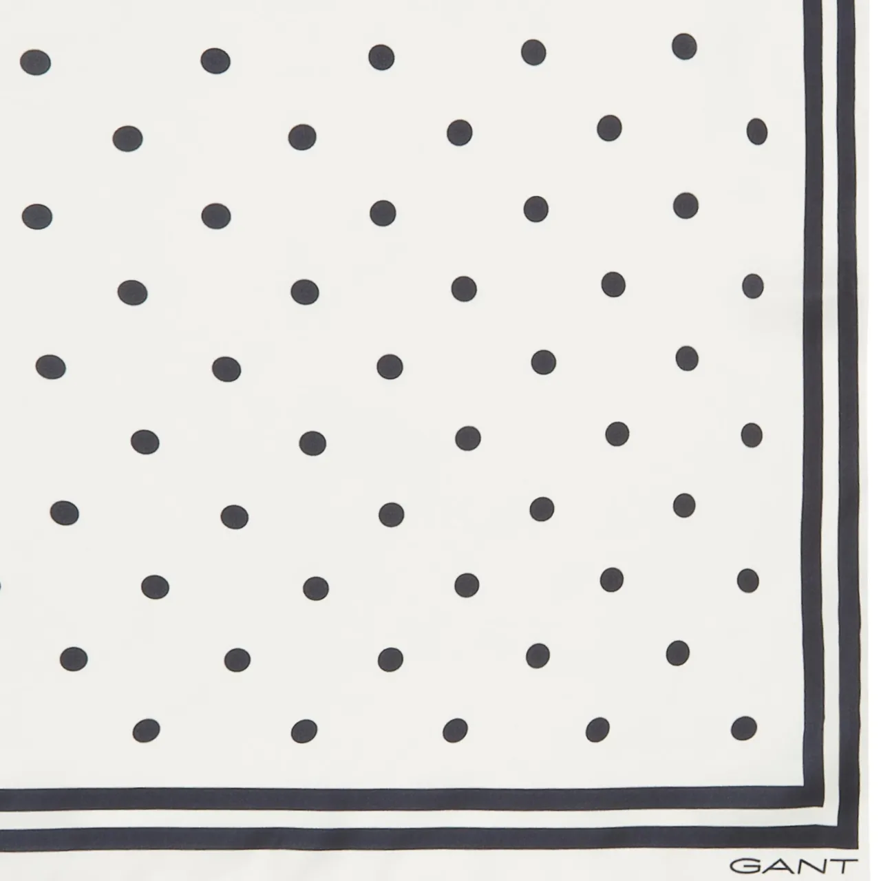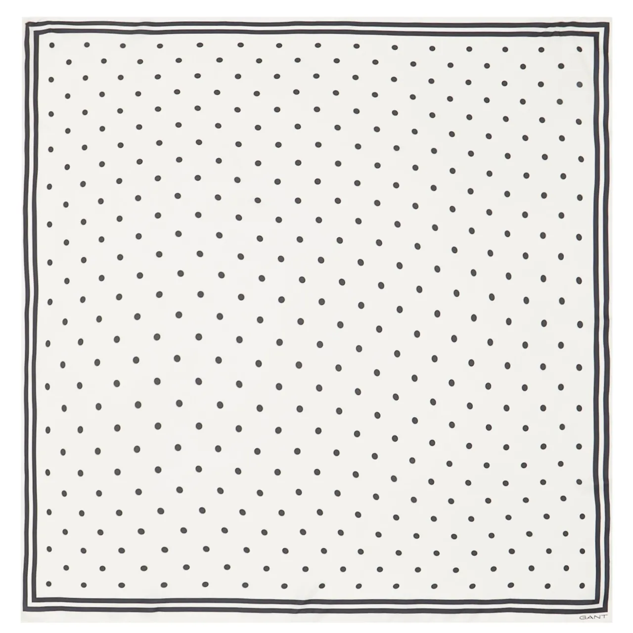 - Square shape, logo details, dot pattern, smooth silk finish