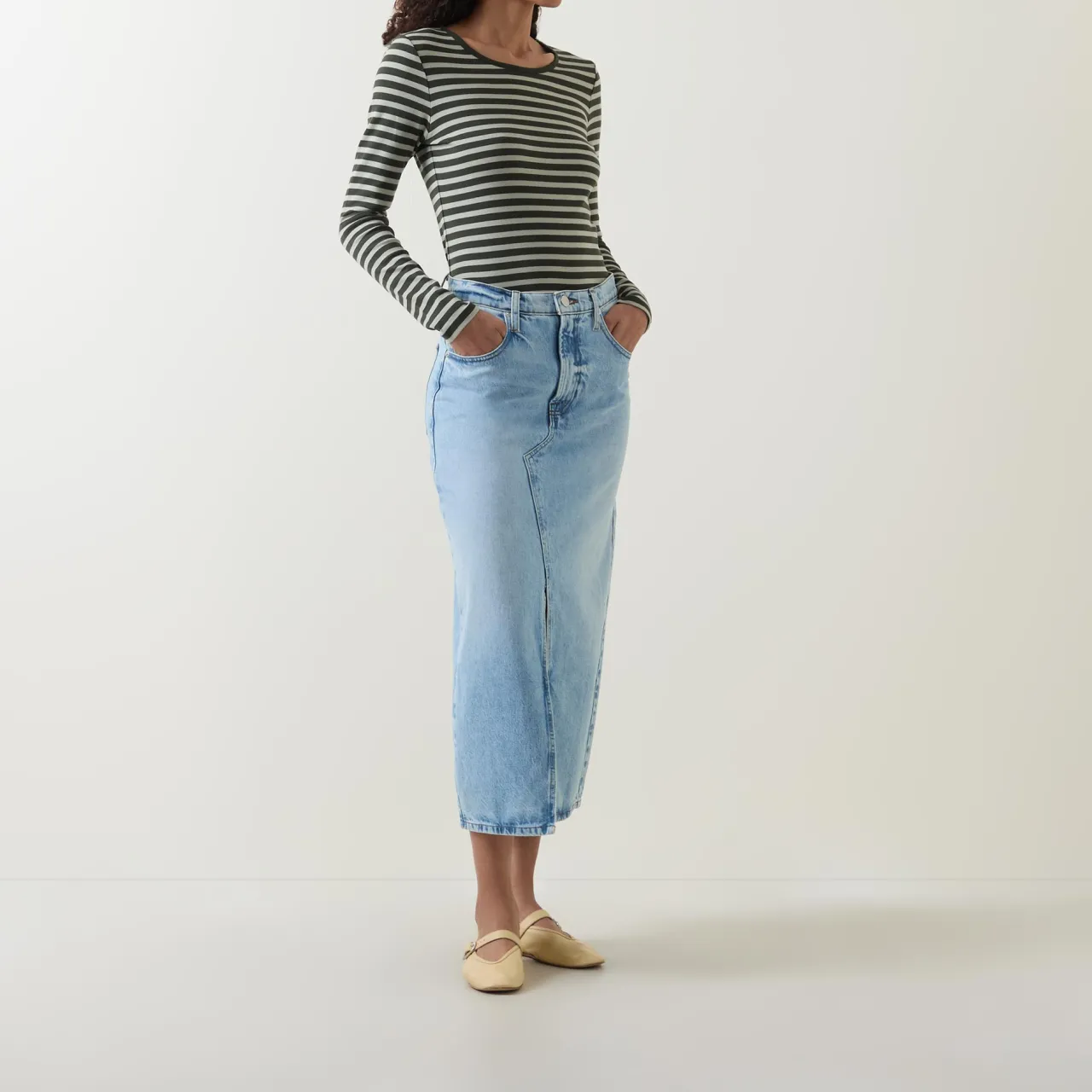 - Ribbed knit, round neckline, long sleeves, straight hemline