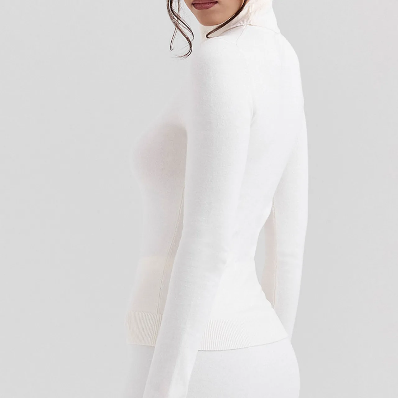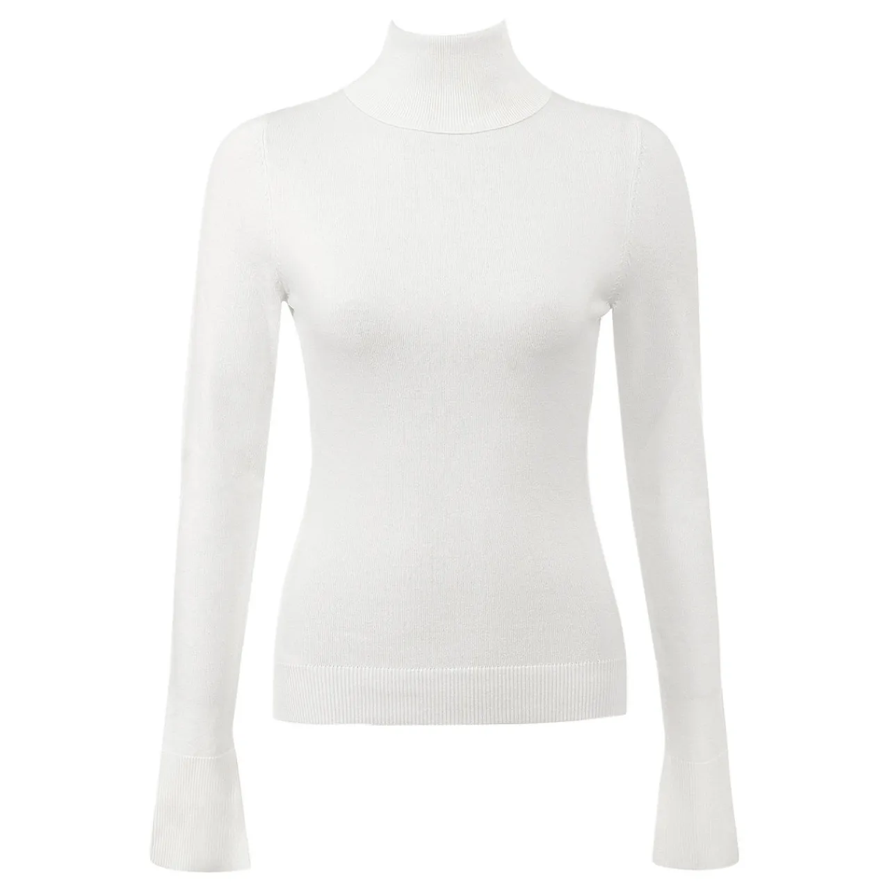 - Fine gauge knit, soft cashmere-cotton blend, ribbed hem, deep ribbed cuffs