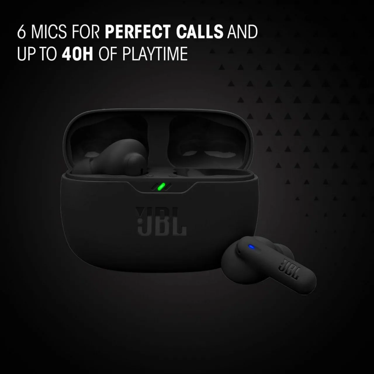 Quality sound just got easier—and more fun. JBL Wave Beam 2 earbuds feature exciting JBL Pure Bass Sound, plus Active Noise Cancelling and Smart Ambient technology so you decide how much of the outside world you want to hear. Manage hands-free crisp, clear calls with just a tap on the earbuds. Use the JBL Headphones app to customise your sound and Voice Prompts language. Connect seamlessly with up to 8 Bluetooth® devices and switch effortlessly from one to another. And with up to 40 hours* of playback time, they’re a great everyday sound companion. (*with ANC off)