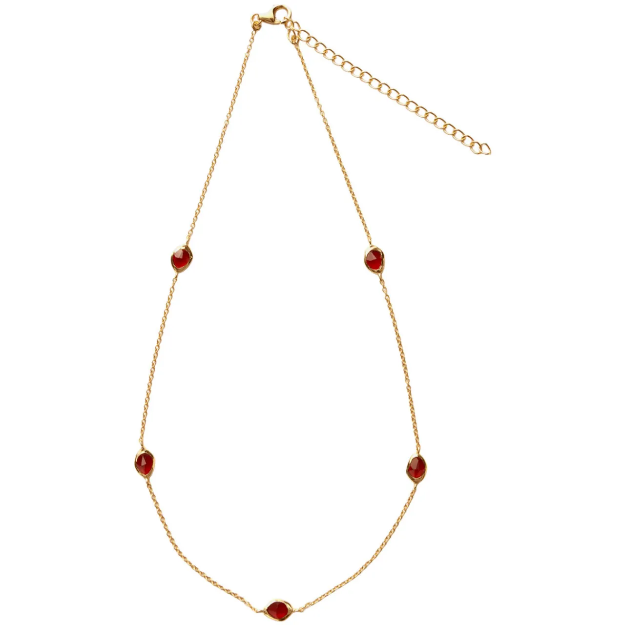 - Five garnet hand cut gems, delicate chain design, lobster clasp fastening, adjustable, gold-tone finish