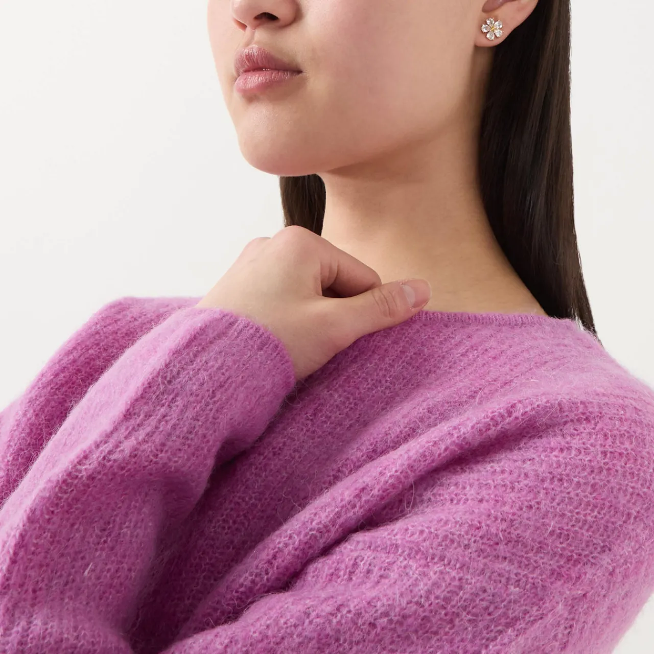 - Stud post fastening, butterfly clasp, flower design, crystal embellishment, polished gold-tone finish