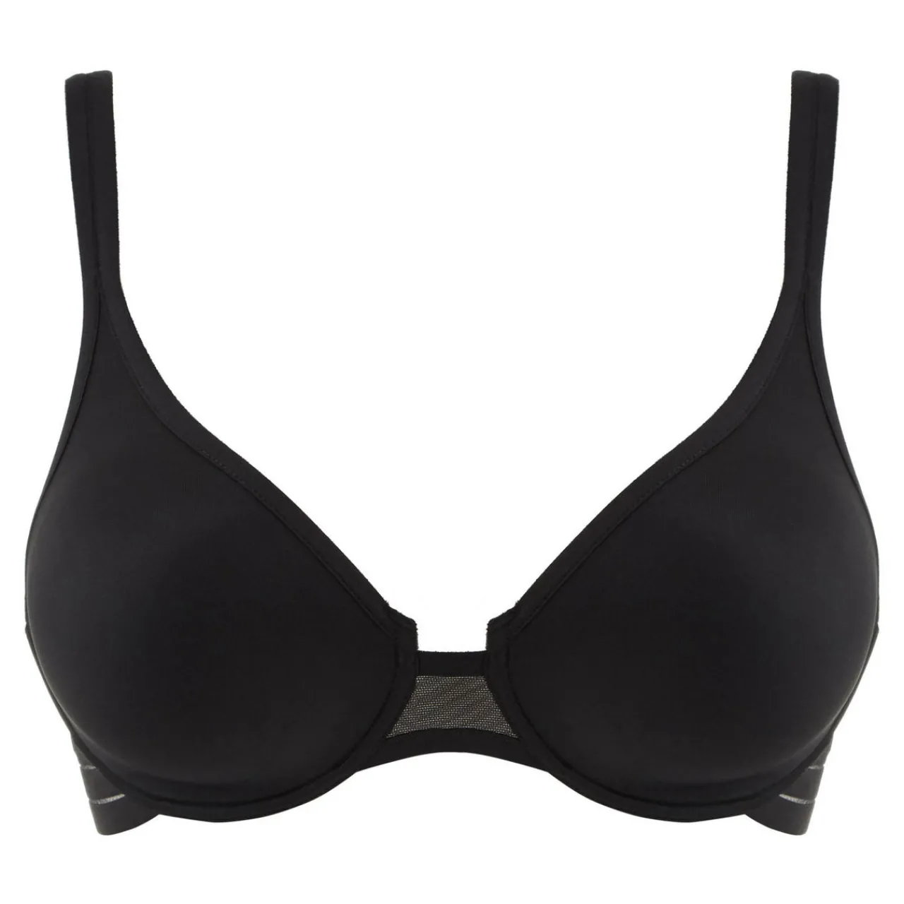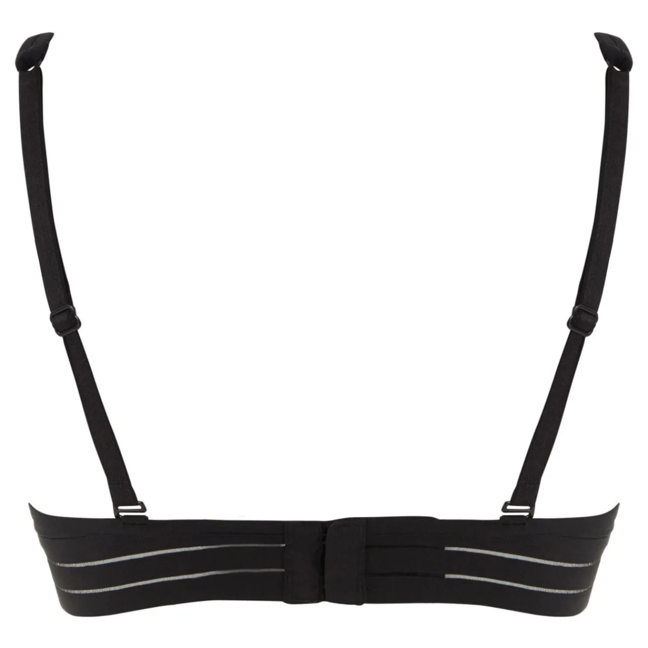 - Adjustable straps, full cups, underwire, adjustable triple hook and eye fastening, sheer side panels, tri-band edging