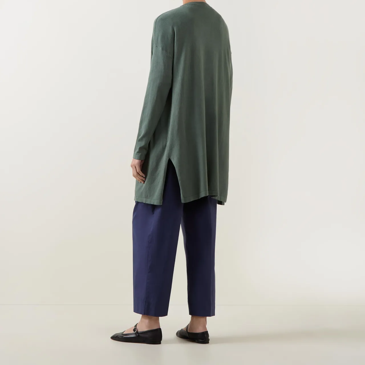 - Open front design, long sleeves, dropped shoulders, tonal stitching, smooth fabric