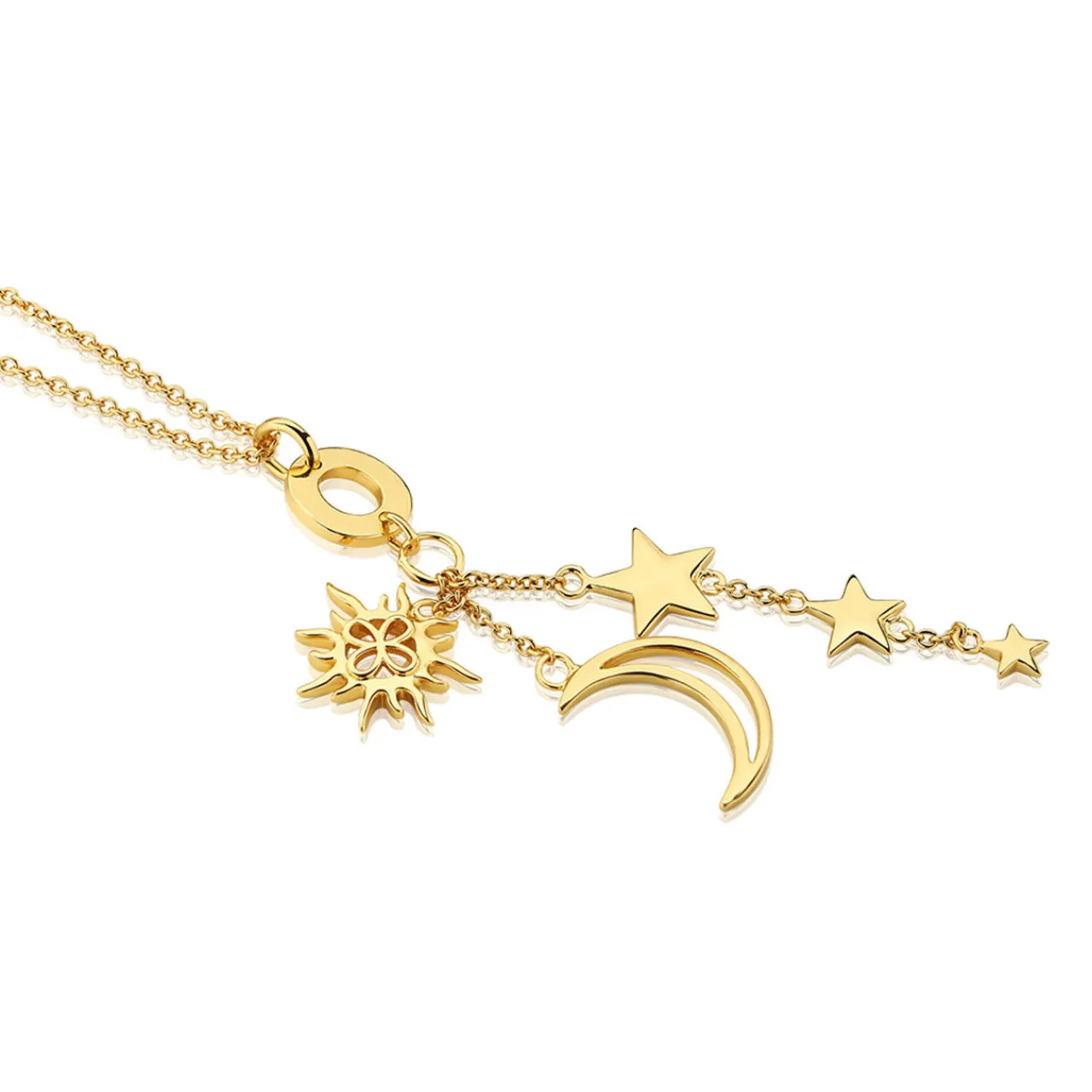 - Sun, moon and stars charms, on-trend design, suitable for layering, adjustable length, lobsert claw clasp, polished gold plated finish