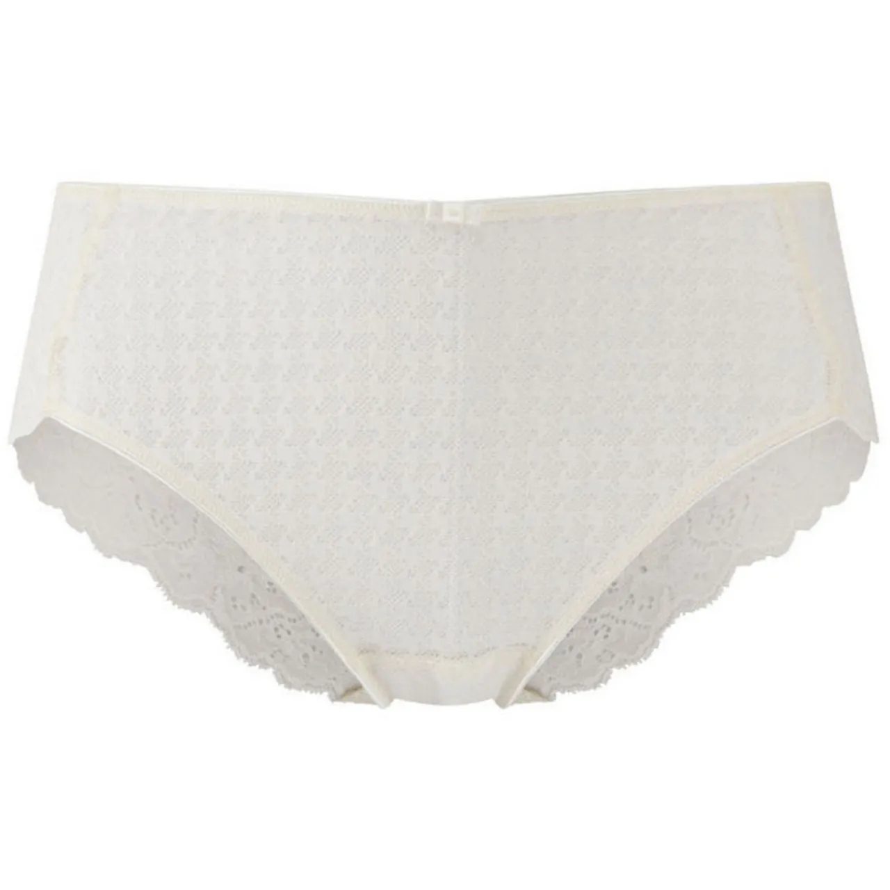 - Houndstooth pattern, lace back with scalloped edge, mid rise, moderate coverage