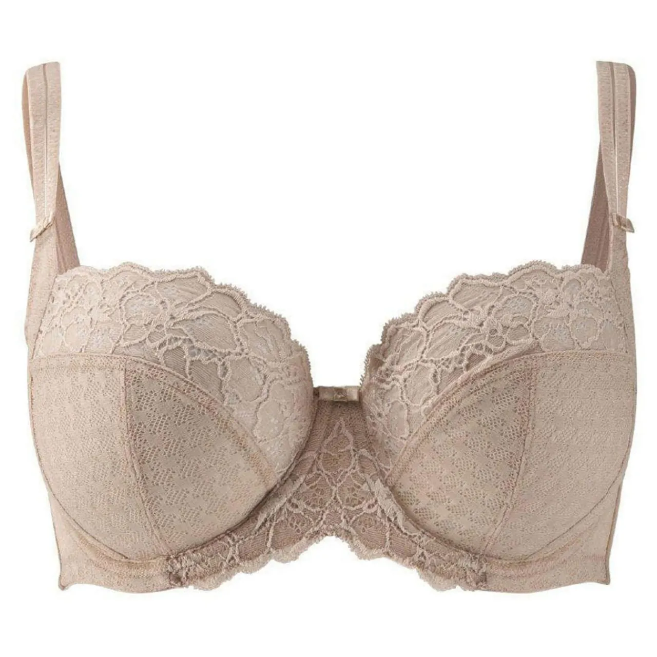 - Full cups, supportive design, adjustable straps, stretch lace