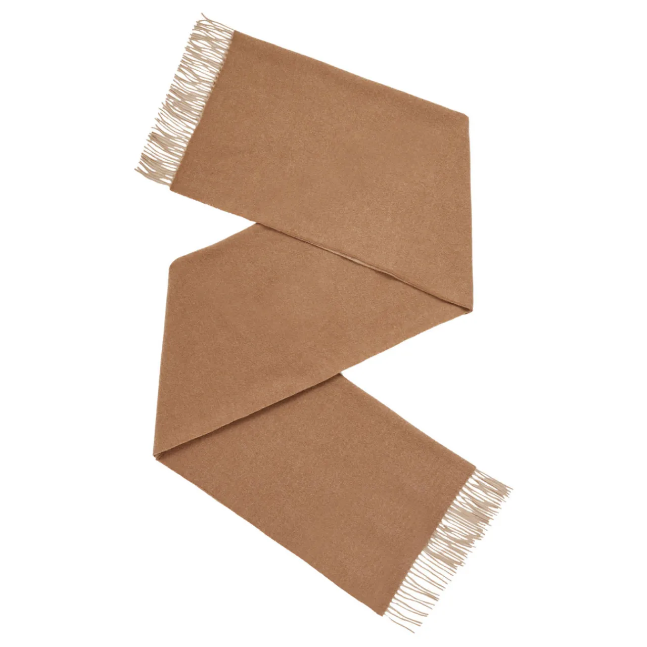 - Embroidered logo detail, wool and cashmere blend, fringed trim