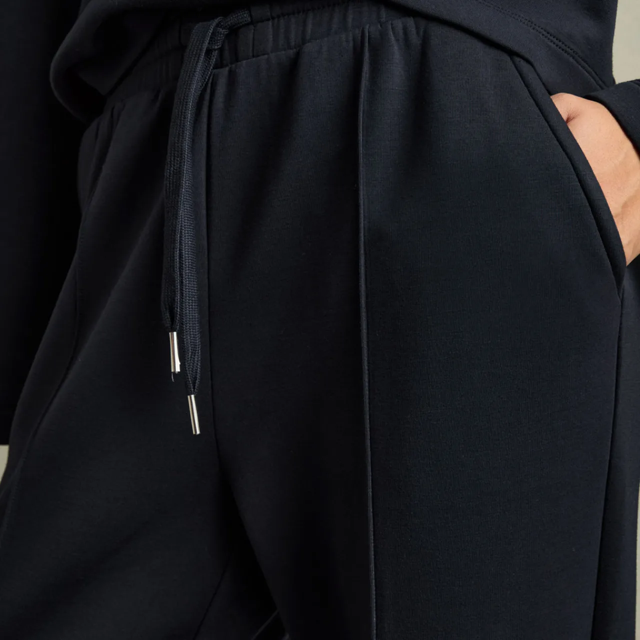 - Elasticated waistband with drawstring adjustable fit, side entry pockets, rear pockets, pintuck detail