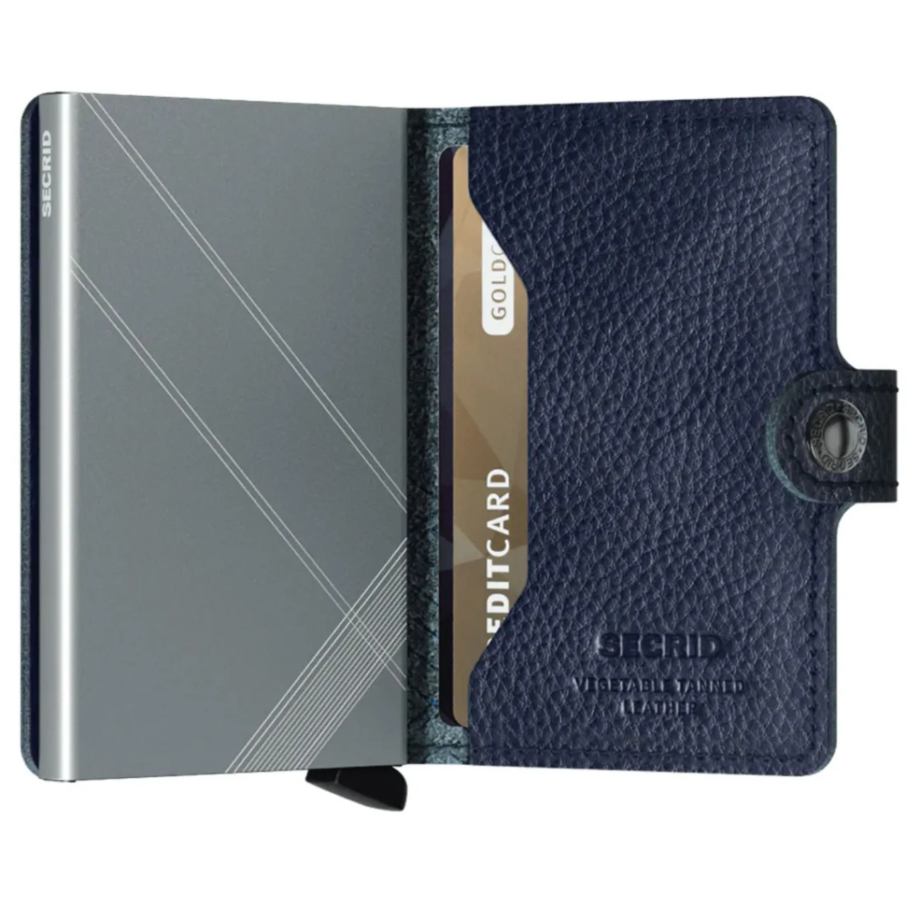 - Stitched leather, snap button design, smooth finish, embossed logo