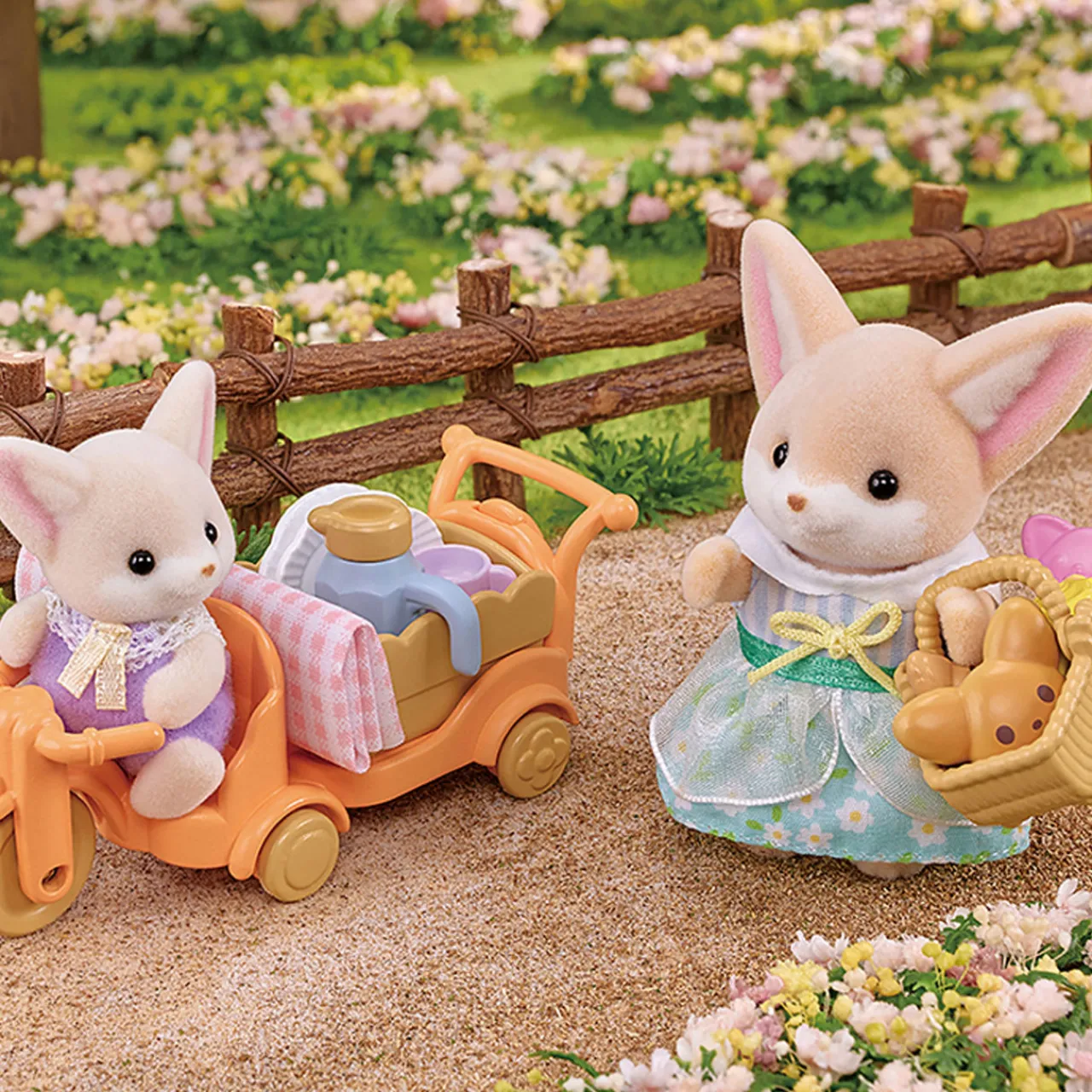 - Fennec Fox’ girl, ‘Fennec Fox’ baby, pushcart, box table, doughnuts, bread, popcorn, banana, candy, two plates, two cups, basket, pitcher, pitcher lid, picnic blanket