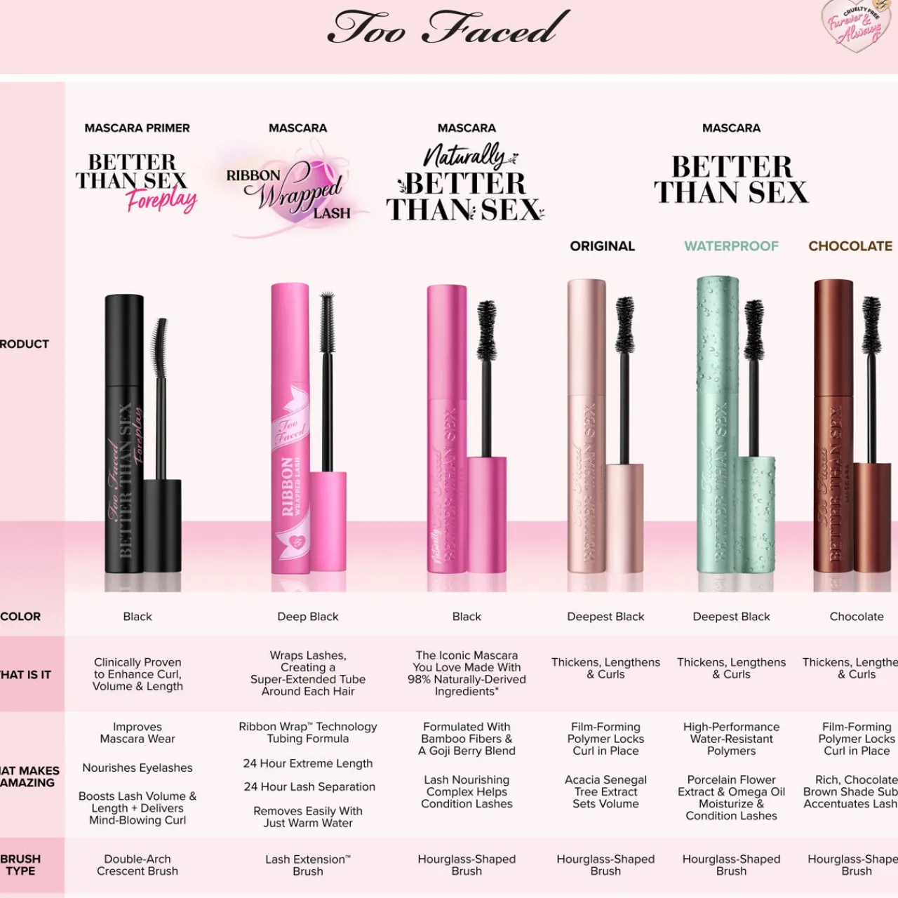 Formulated with high-performance, water-resistant polymers for sweat-proof long-lasting results that stretches, lengthens, and curls after just one coat for the most luscious, dramatic, and fluttery lashes possible. Better Than Sex Mascara gives you mind-blowing lashes, every time! The mascara features an hourglass brush and a collagen-enriched formula to create lifted, curled lashes. Why it’s better than sex: – Waterproof – Sweat-proof – Stretches, lengthens, and curls lashes for extreme volume without flaking! – High-performance, water-resistant Polymers hold lashes and lock curls into place for the most dramatic, lengthened lashes possible – Unique Peptides condition lashes to ensure they are kept luscious during and after mascara use.