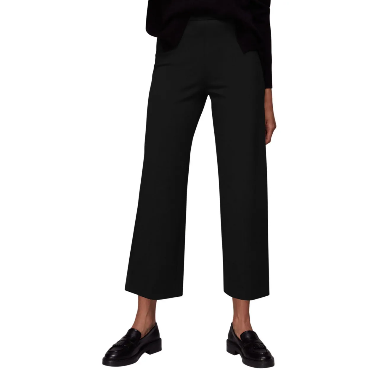- Wide leg, cropped length, fitted at the waist