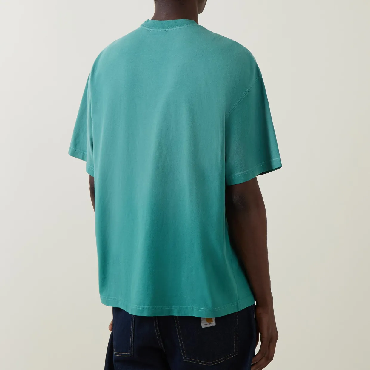 - Crew neckline, short sleeves, dropped shoulders, chest patch pocket with square logo patch, tonal stitching, straight hemline, smooth fabric