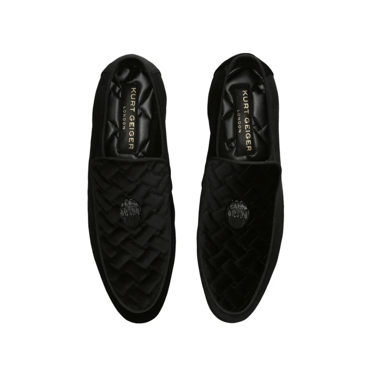 - Slip-on, almond toe, quilted design, eagle embellishment
