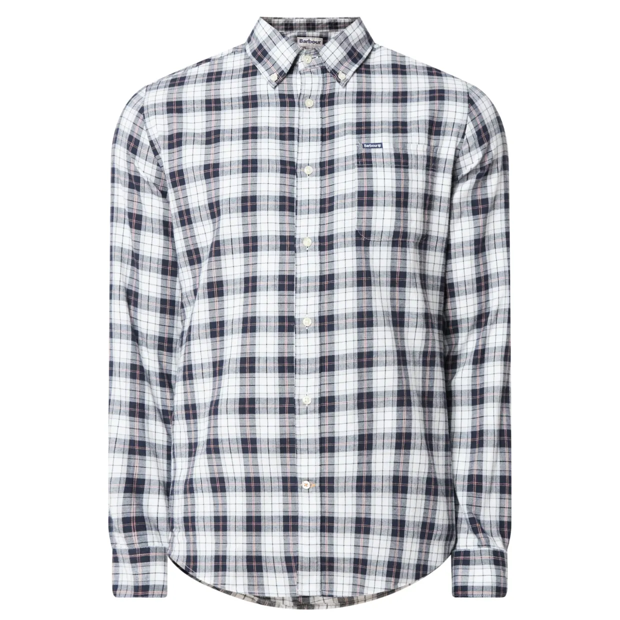 - Button-down collar, long sleeves, button fastenings, logo detail, curved hemline