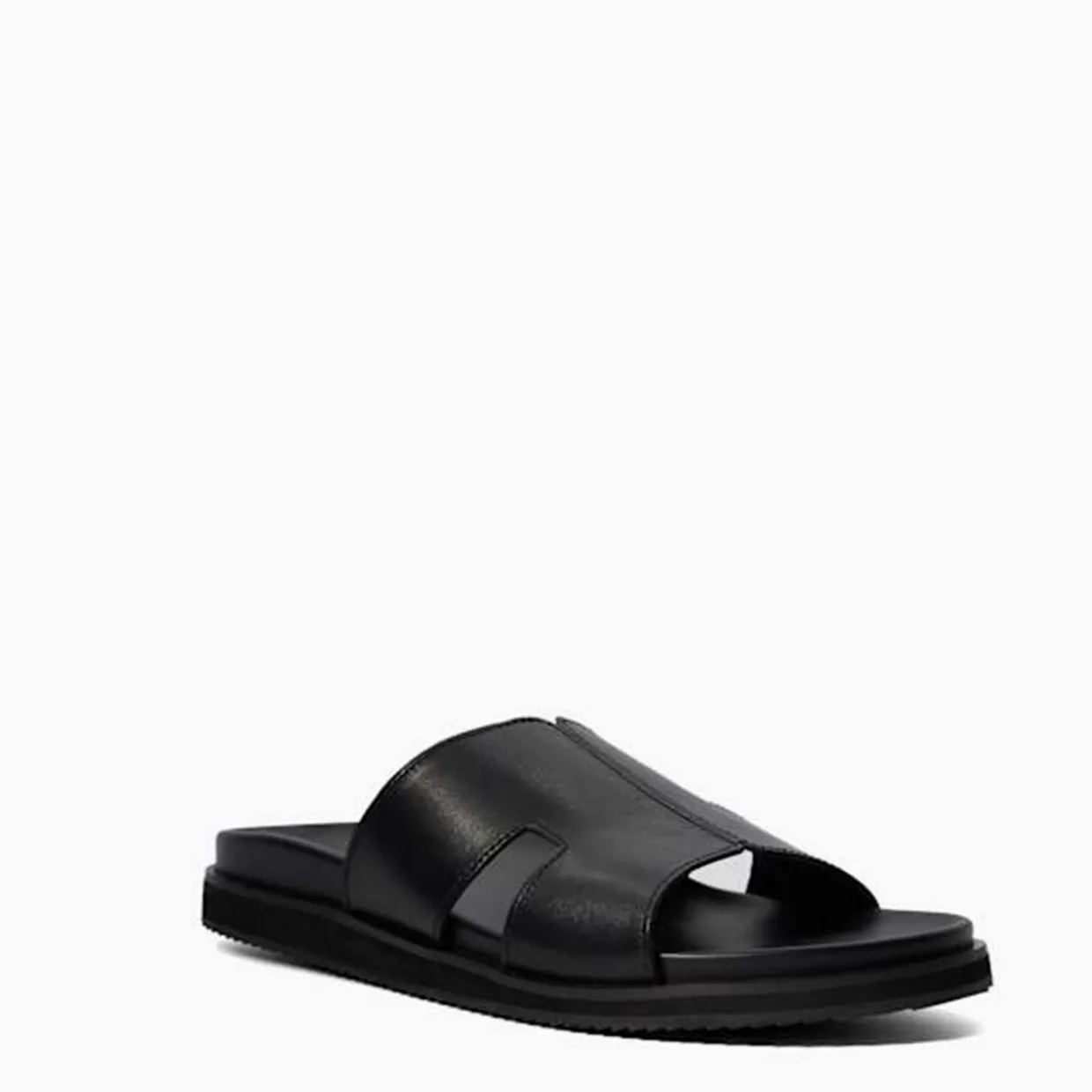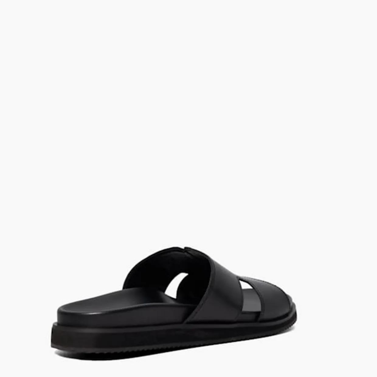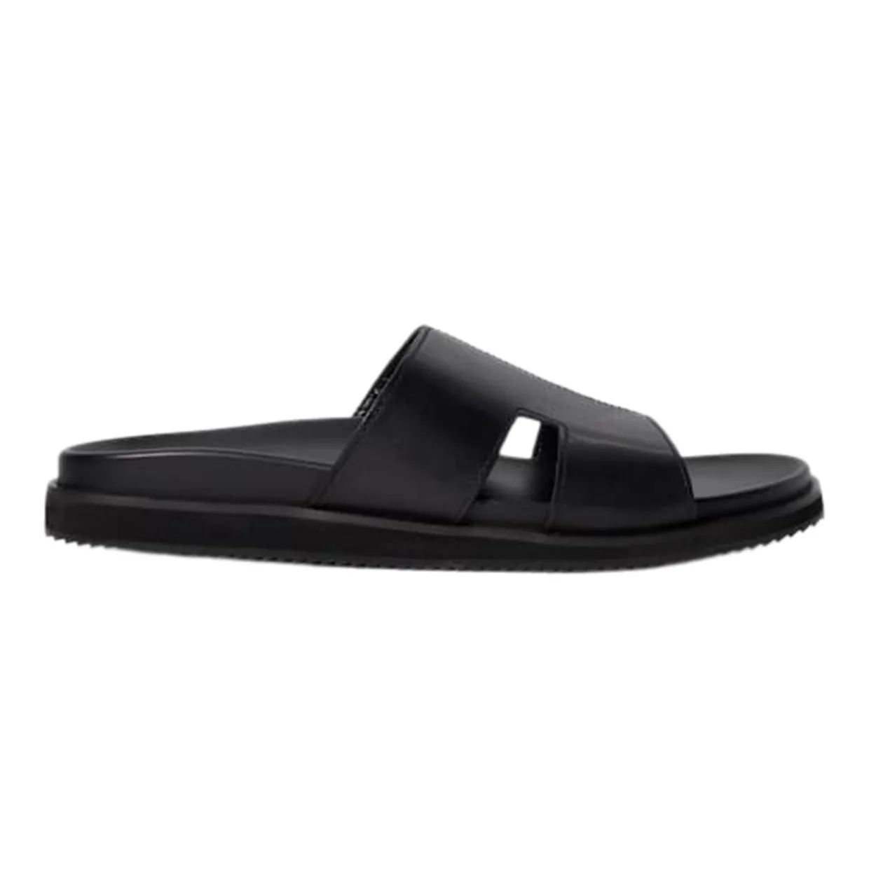 - Round open toe, slip on design, cut-out detail, textured sole, smooth finish
