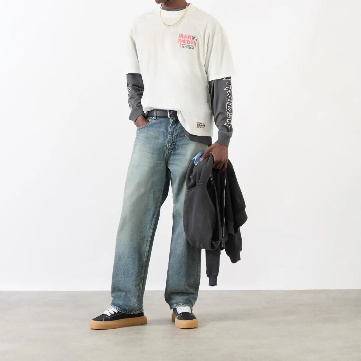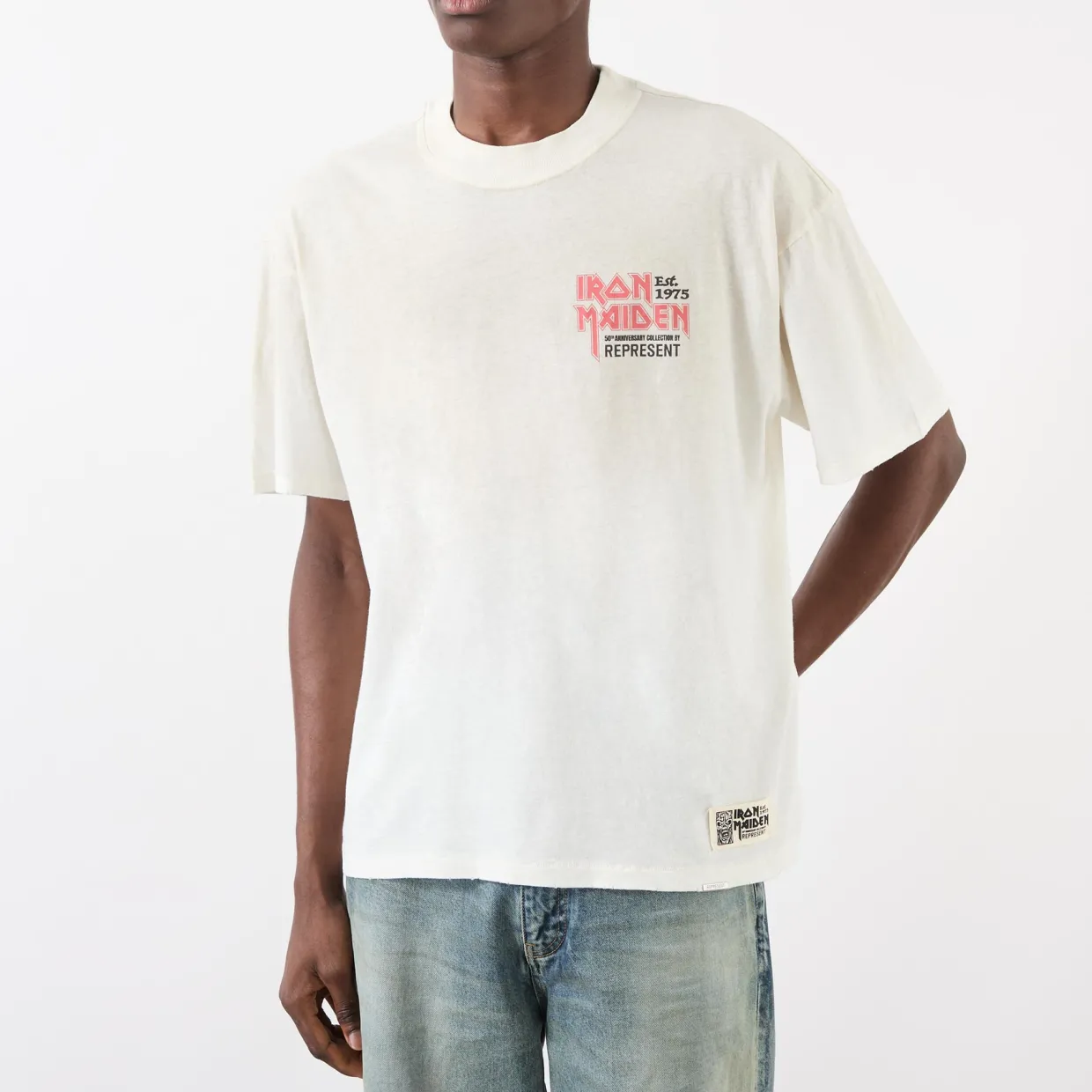 - Round neck, short sleeves, logo detail, Iron Maiden print, straight hemline