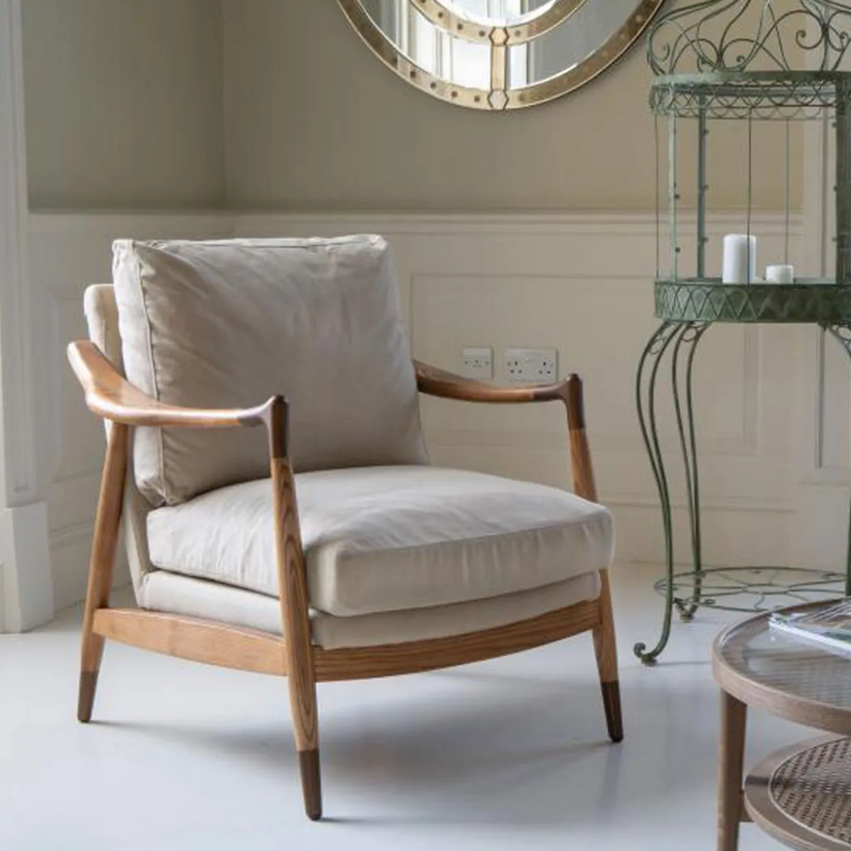 The Jacob Armchair is a perfect blend of mid-century modern design and contemporary comfort. The sleek wooden frame features gently curved armrests and tapered legs. The chair is also generously cushioned, inviting you to sit back and unwind.