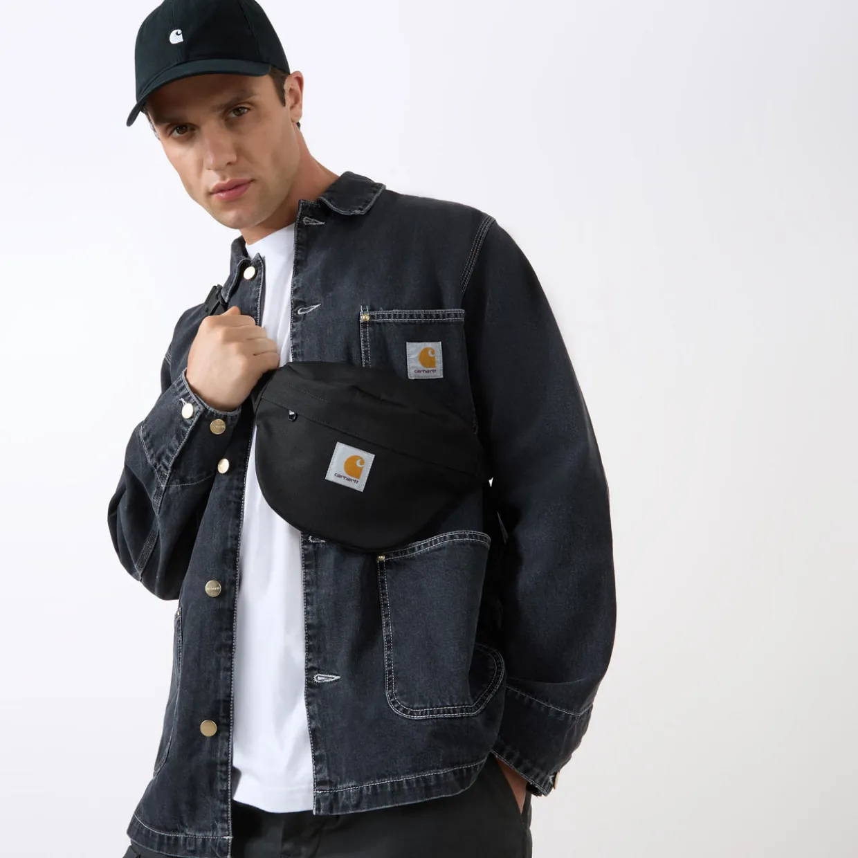 - Adjustable strap, clasp fastening, zip-fastening, front logo patch, canvas finish