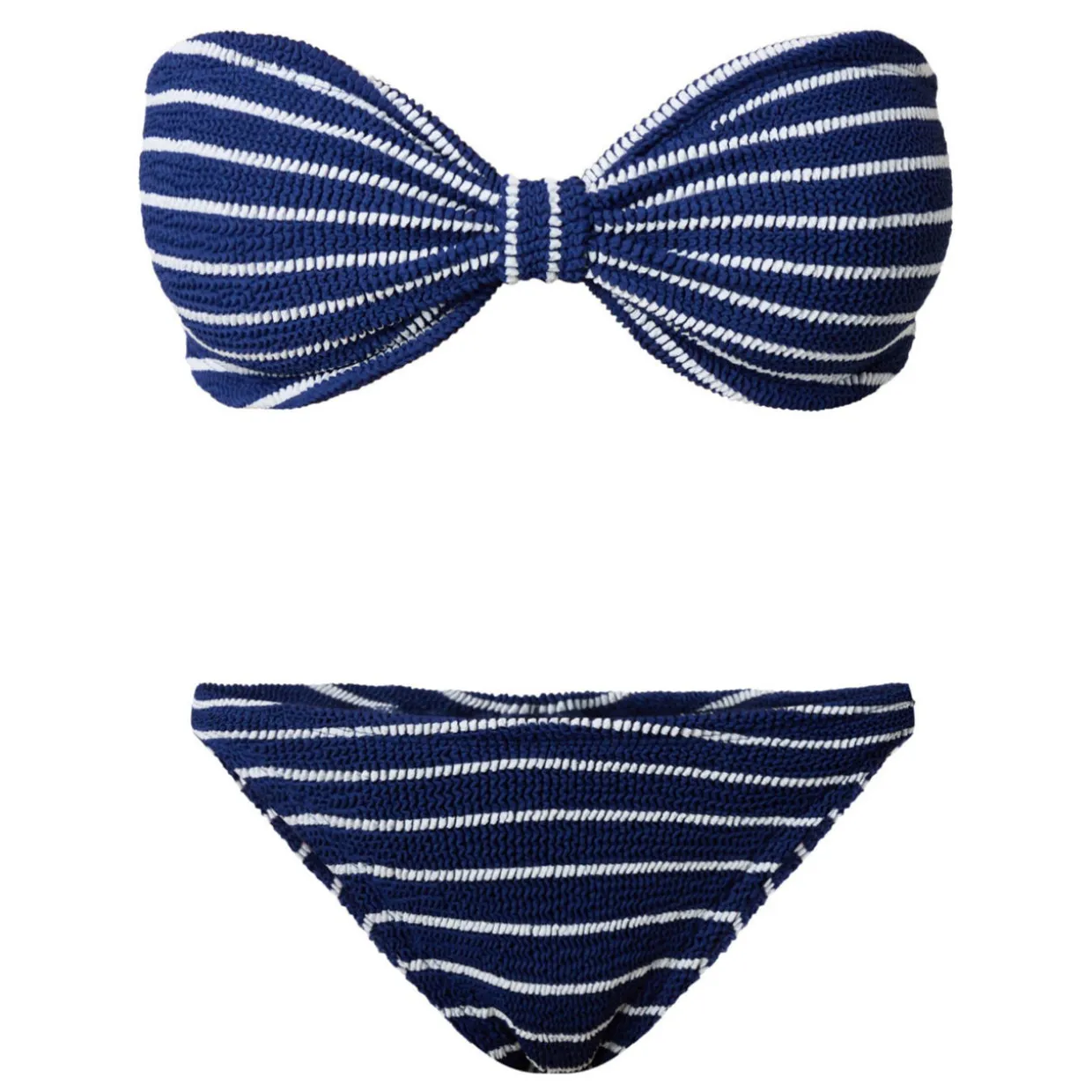 - Top: Strapless, bandeau style, striped pattern. Bottoms: Elasticated waistband, striped pattern