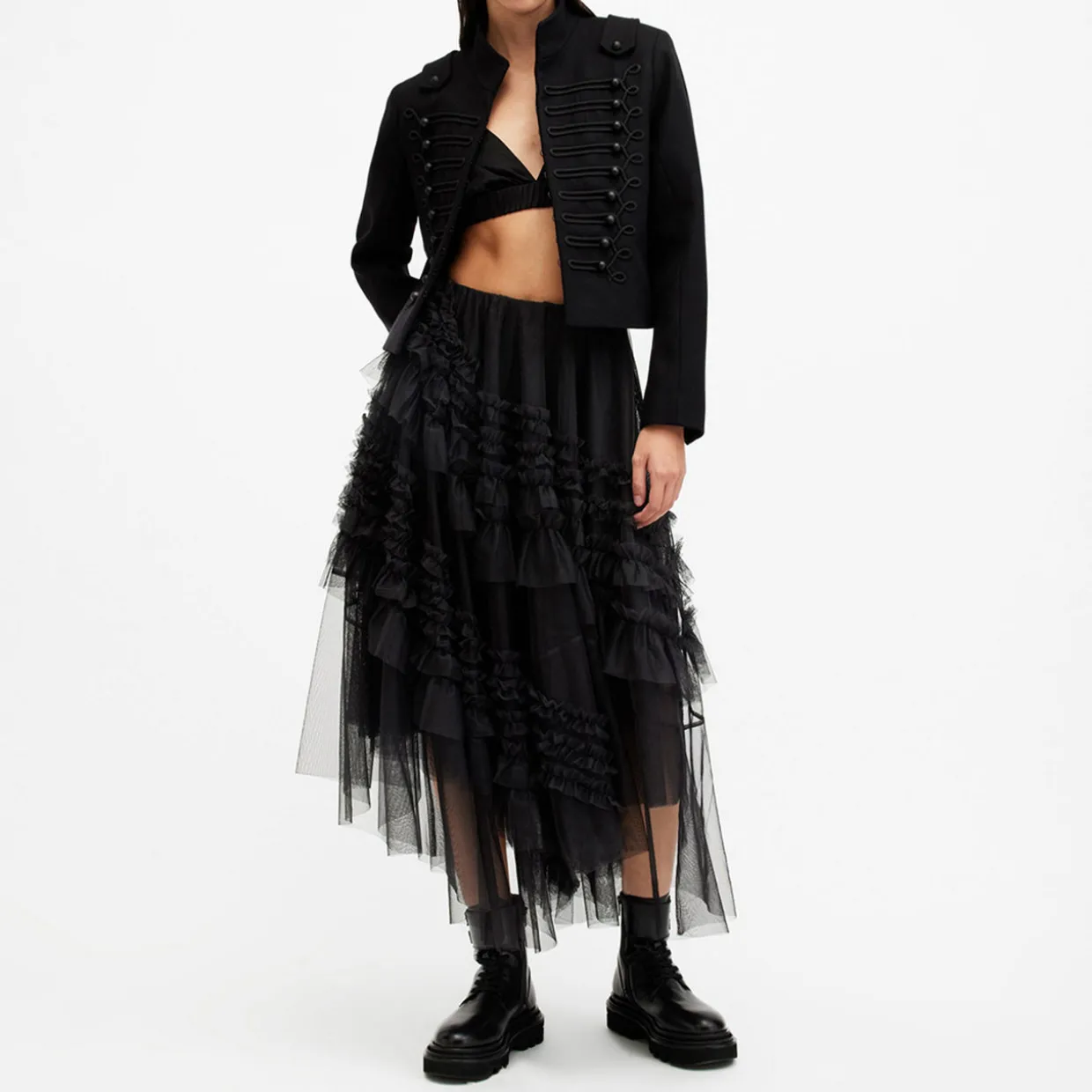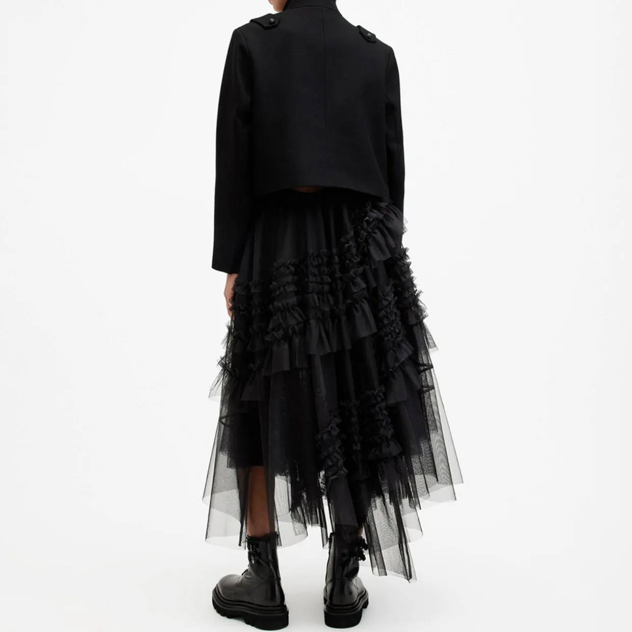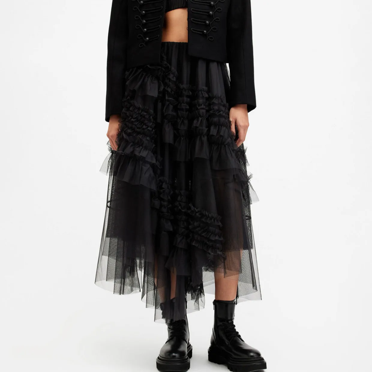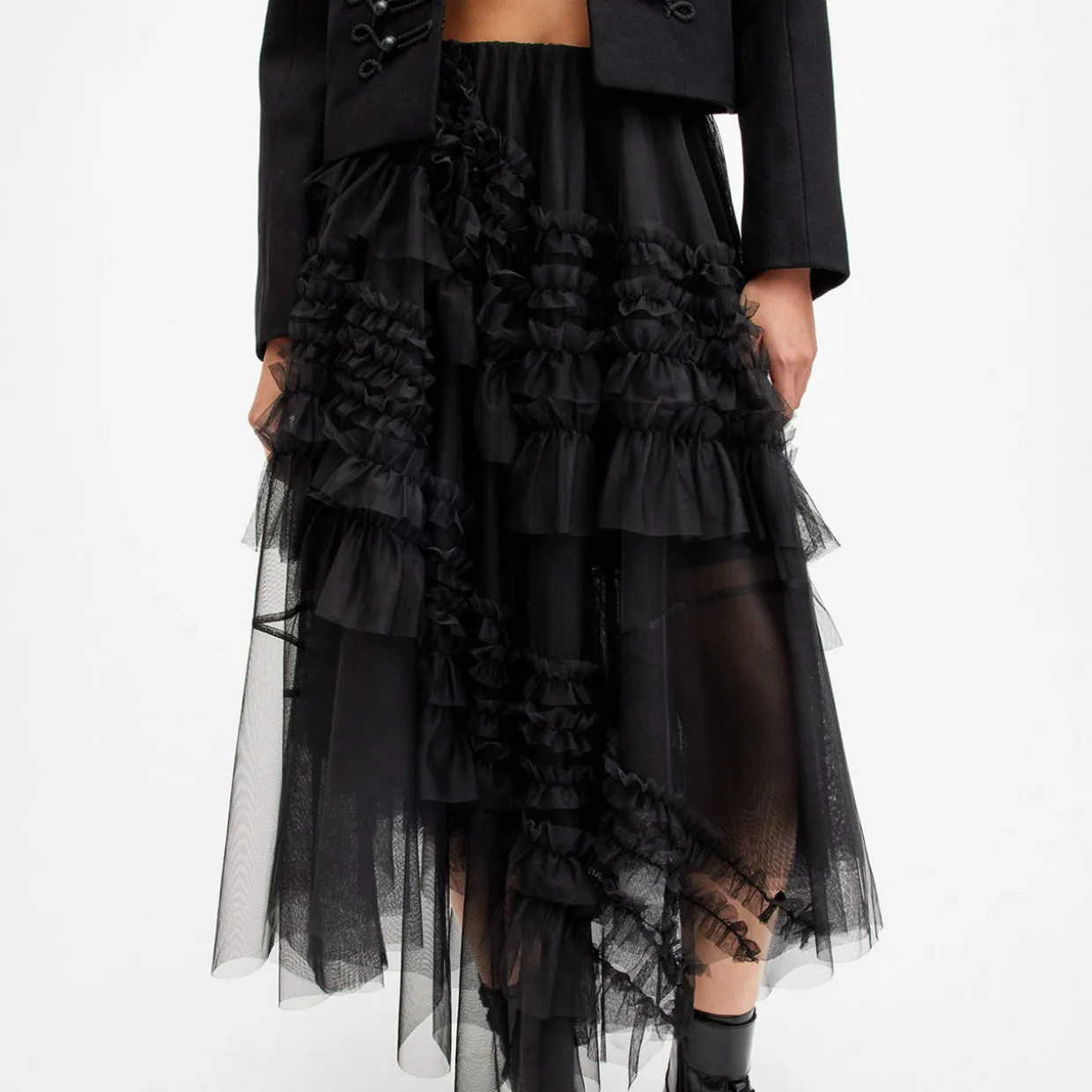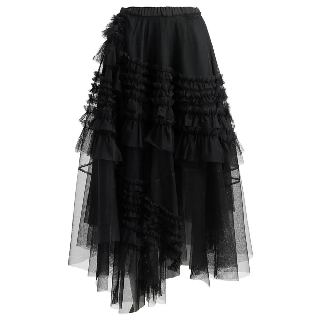 - Asymmetrical hemline, midi length, tulle design, ruffle detailing
