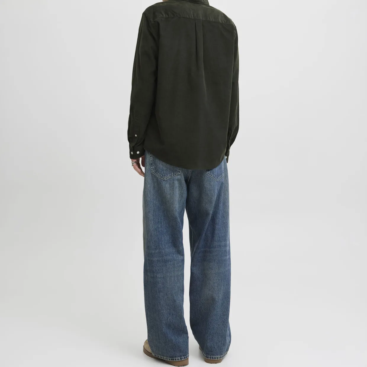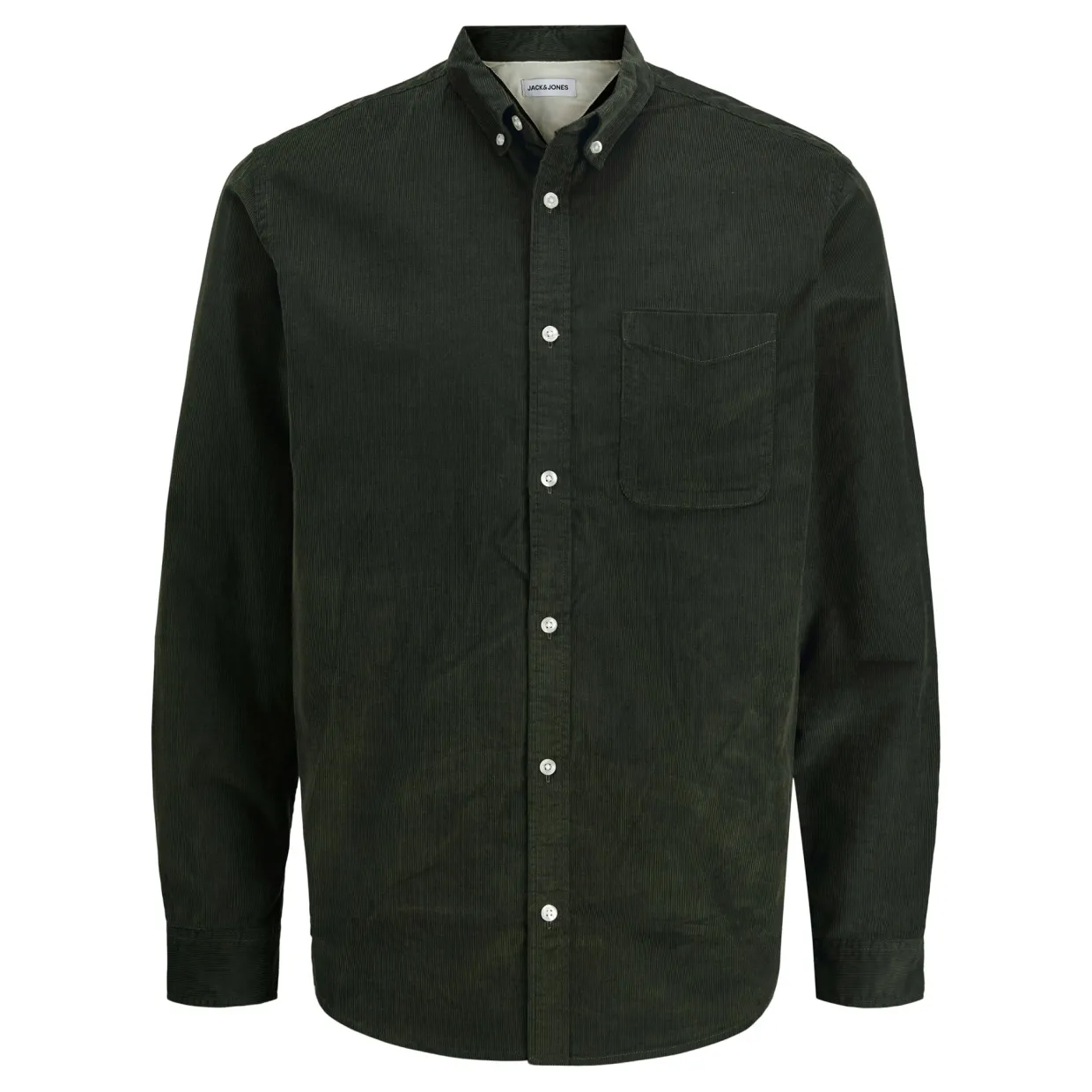 - Button-down point collar, long sleeves, buttoned cuffs, front button fastening, one chest patch pocket, curved hem, corduroy finish