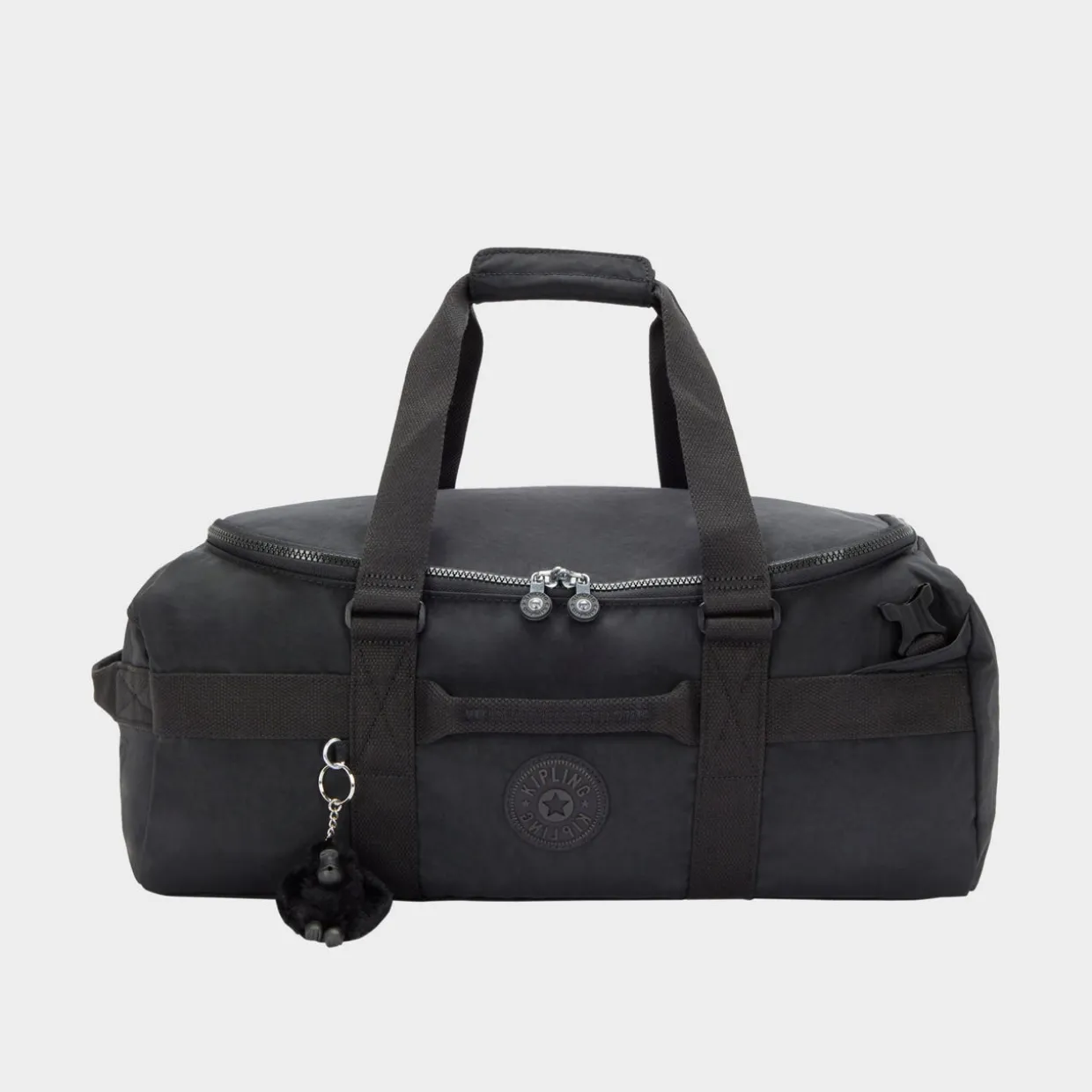 - Padded and adjustable backpack straps, backpack or duffle bag convertible, zipped main compartment, 15-inch laptop compartment, round brand logo, signature monkey keychain, top handle, side handle
