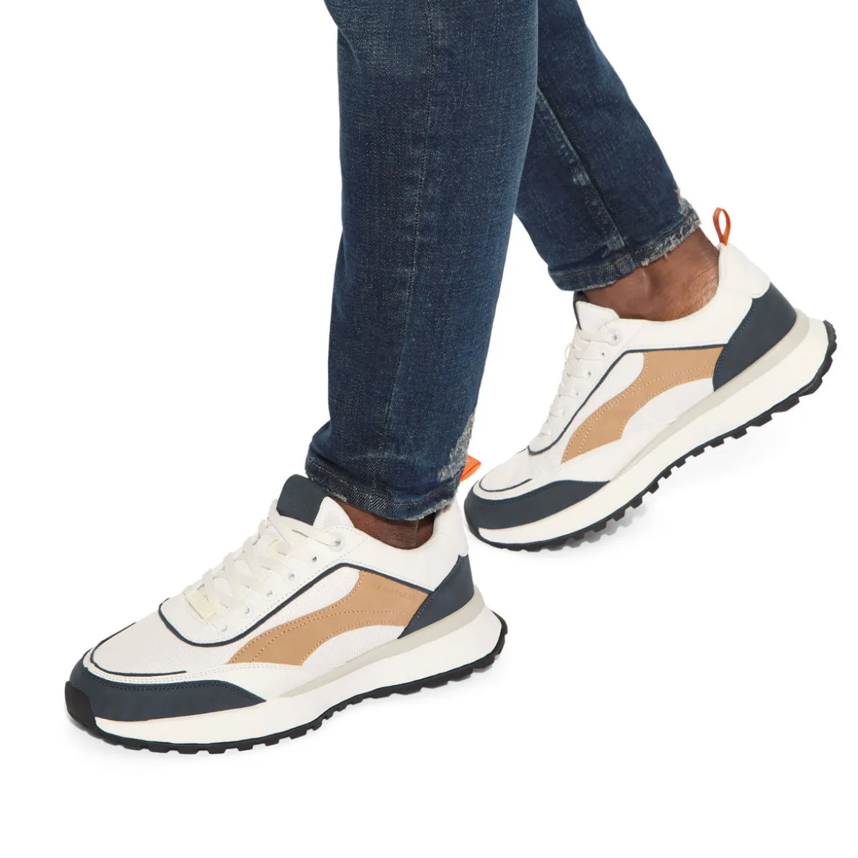 - Contrast panels, front lace-up fastening, branded tongue, logo tab