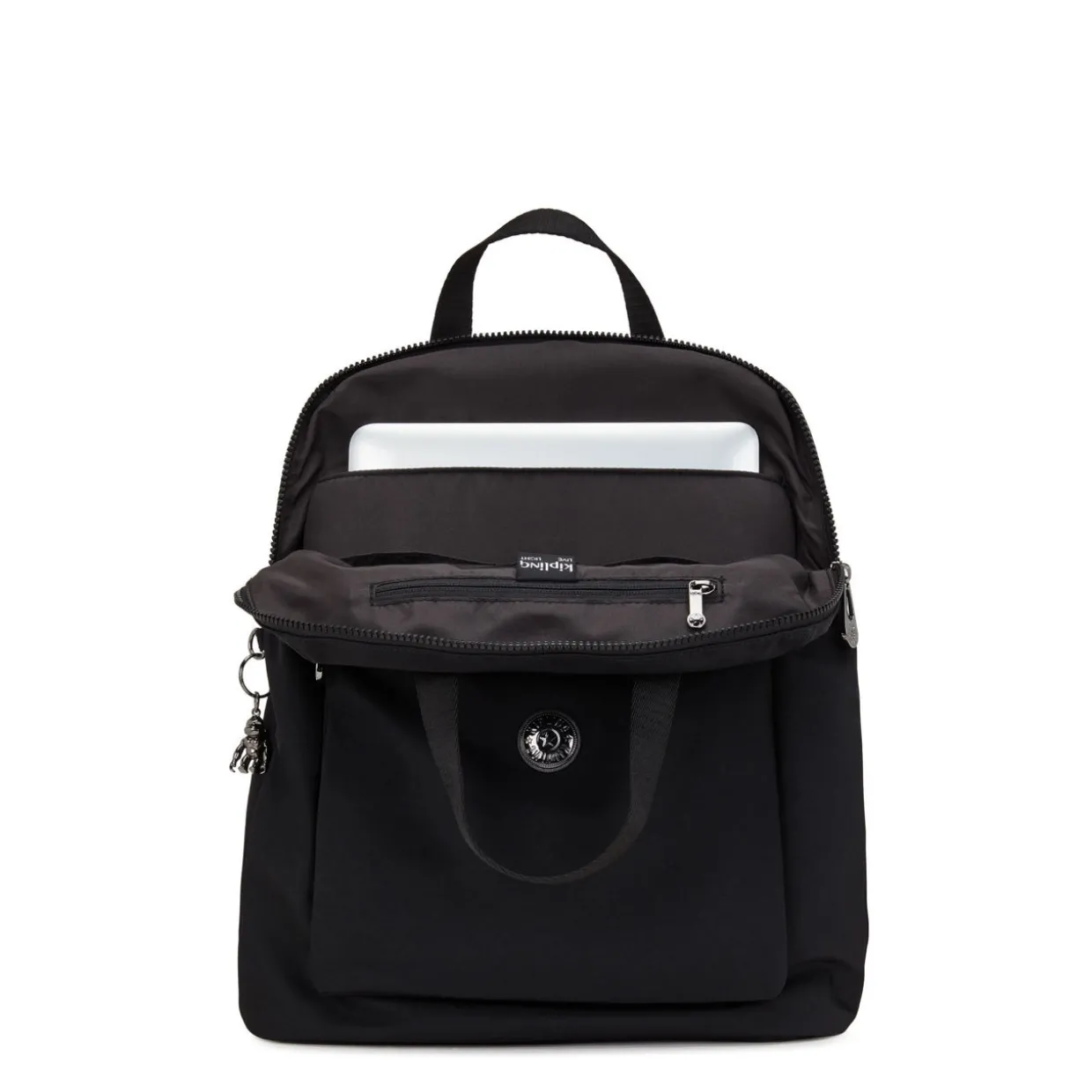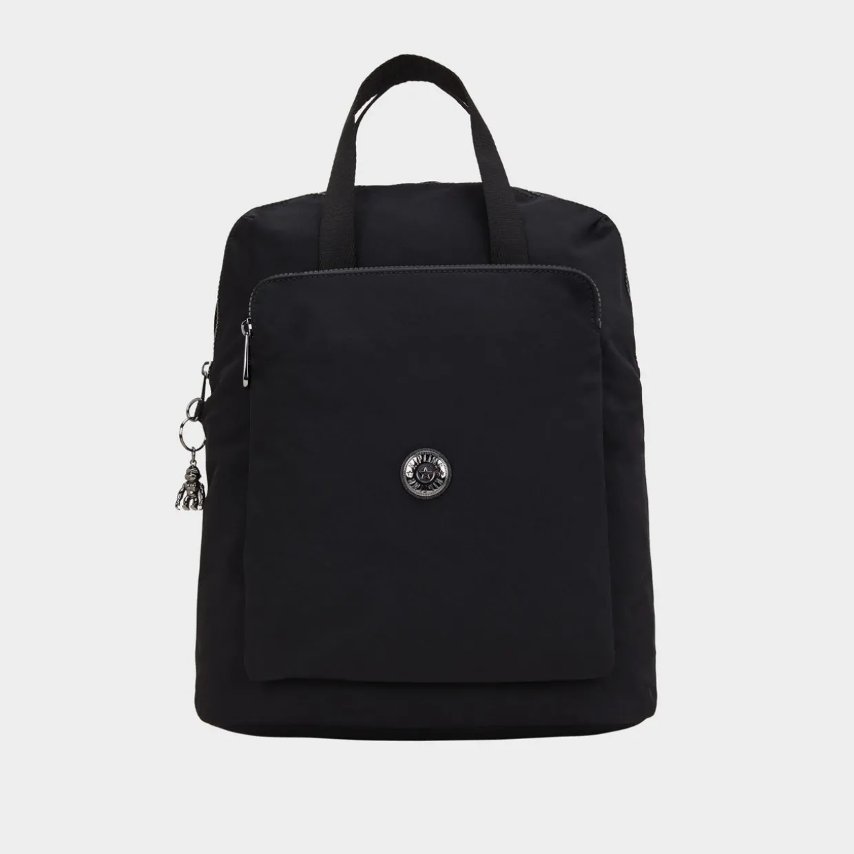 - Adjustable shoulder strap, multi-functional, zipped front pocket, zipped back pocket, main compartment with zip fastening, round brand logo, robot monkey keychain, silver-tone hardware