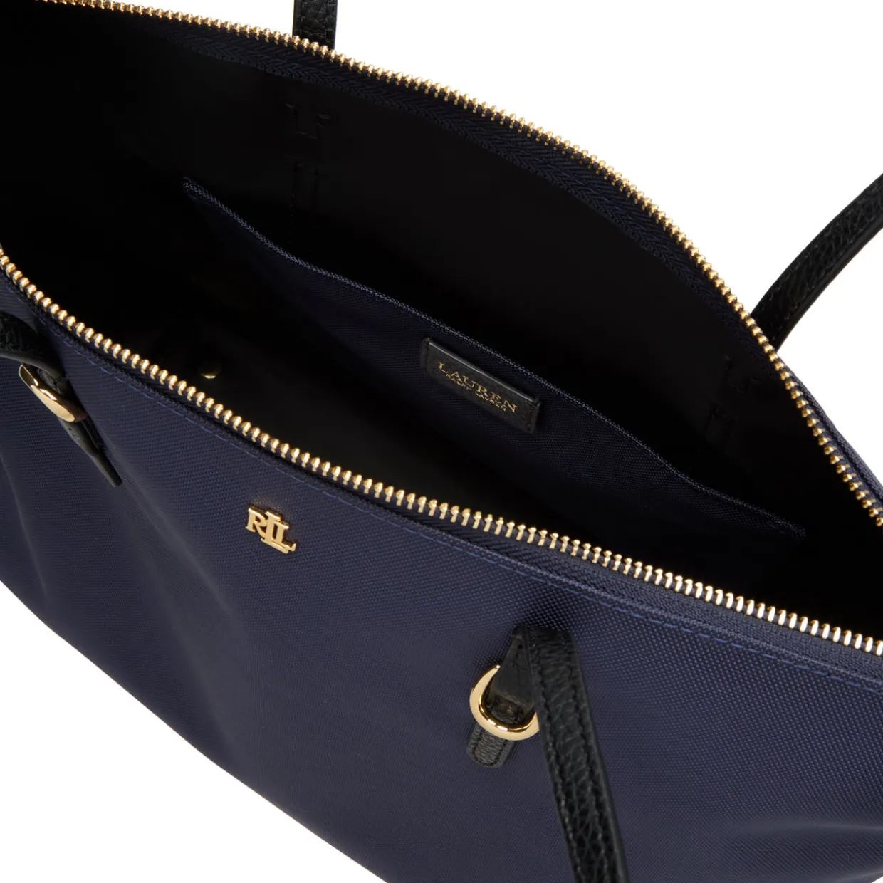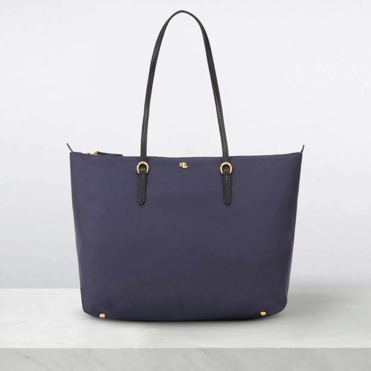 - Top carry handles, top-zip fastening, gold-toned hardware, logo details, protective studs at base