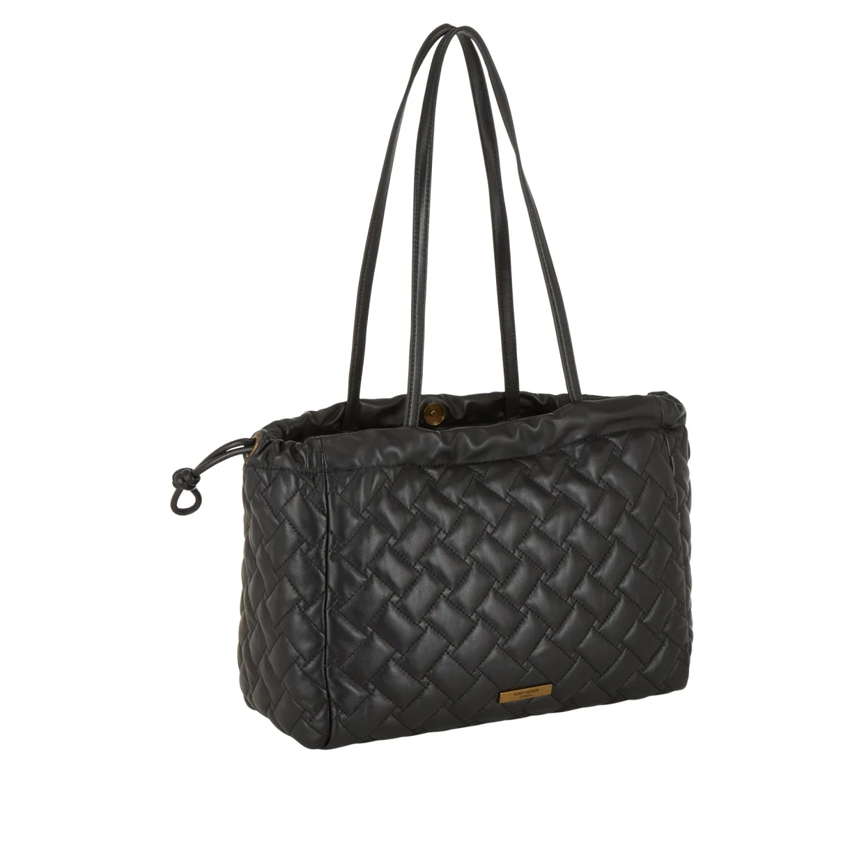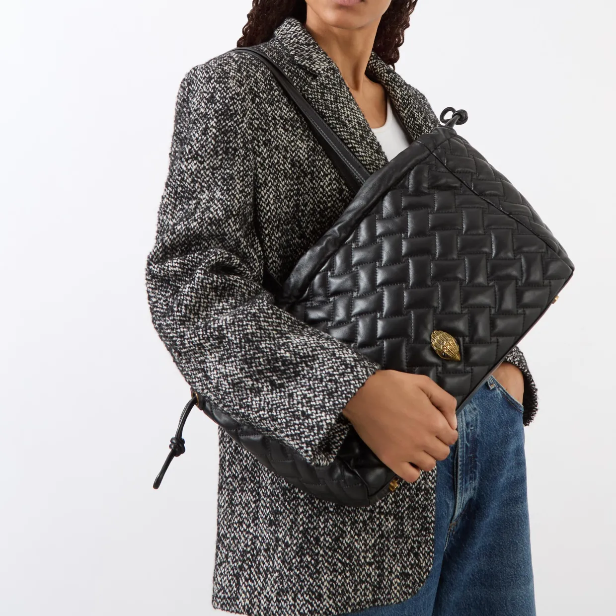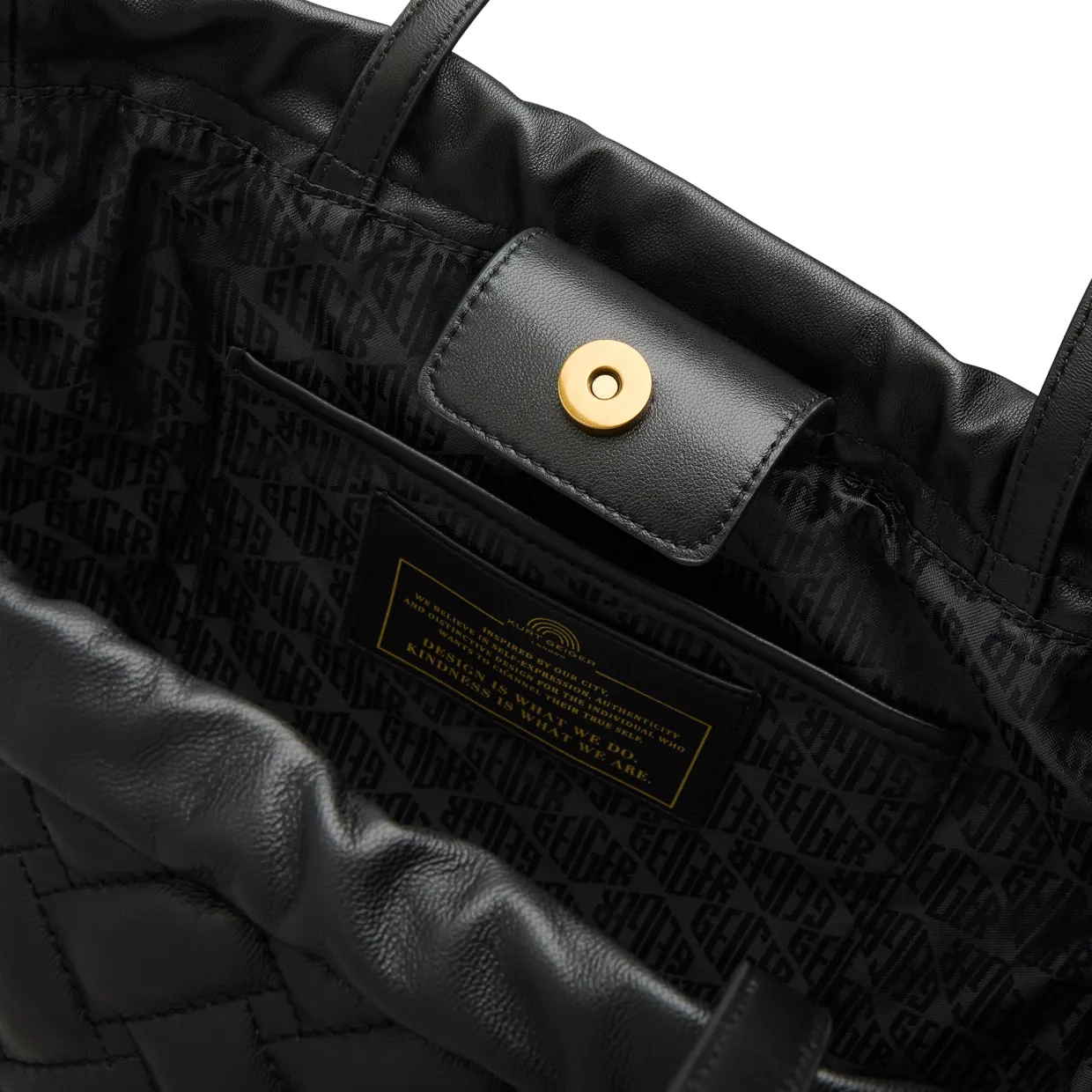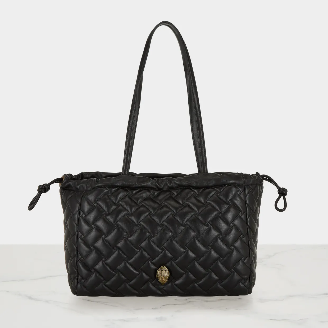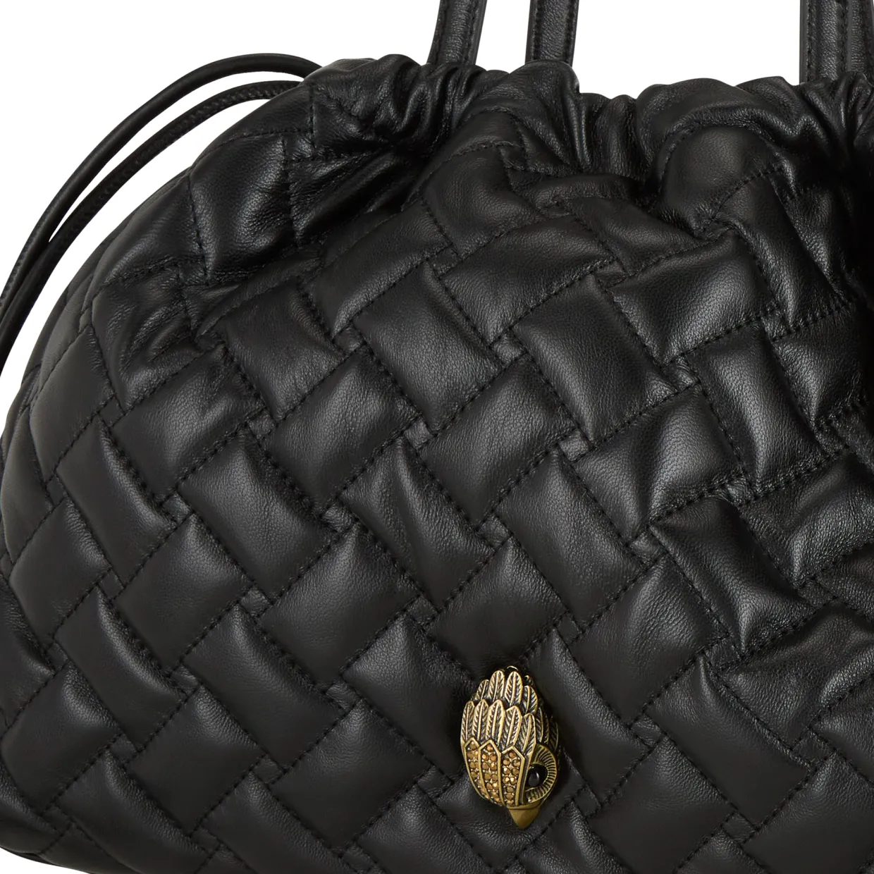 - Carry handles, drawstring closure with magnetic snap fastening, antiqued brass hardware, Eagle Head detail, overstitch quilted design, protective feet, soft finish