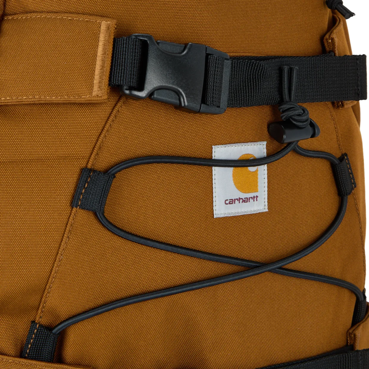 - Top handle, two-way zip-around fastening, mesh side pocket with elasticated trim, side pocket with zip fastening, adjustable padded shoulder straps with buckle fastening, logo patch detail, 24.8 litre capacity, water repellent, buckles for board fixing, canvas fabrication