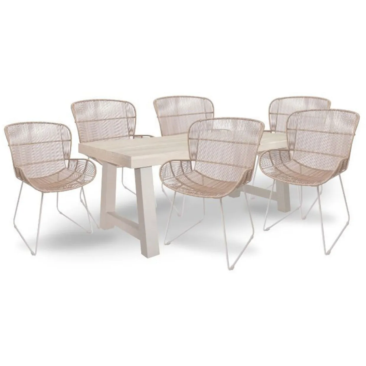 Whether you are hosting a summer barbecue, or enjoying a quiet al fresco lunch, the sophisticated Kingsville Garden Dining Set is sure to help create unforgettable outdoor experiences. The sturdy table is carefully processed to achieve a distinctive timeworn look that invites character and structure to your garden. The six chairs compliment the table perfectly and add both comfort and visual appeal.