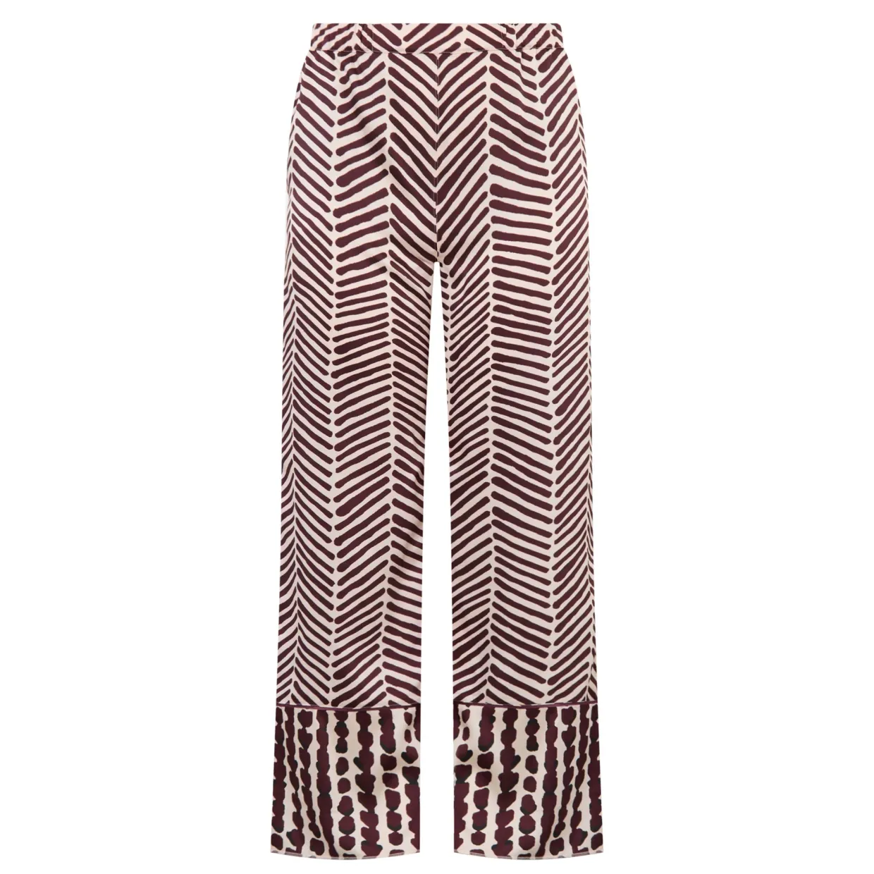 - Elasticated waistband, side entry pockets, contrast piping, printed, satin fabric
