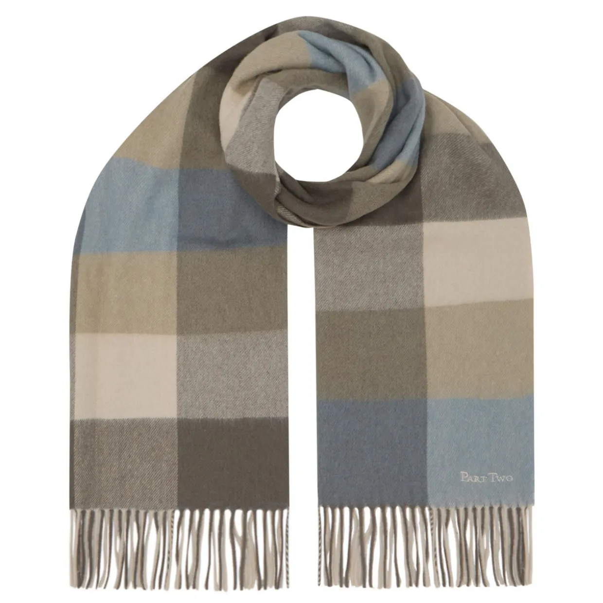 - Wrap-around style, fringed edges, soft finish, embroidered logo detail