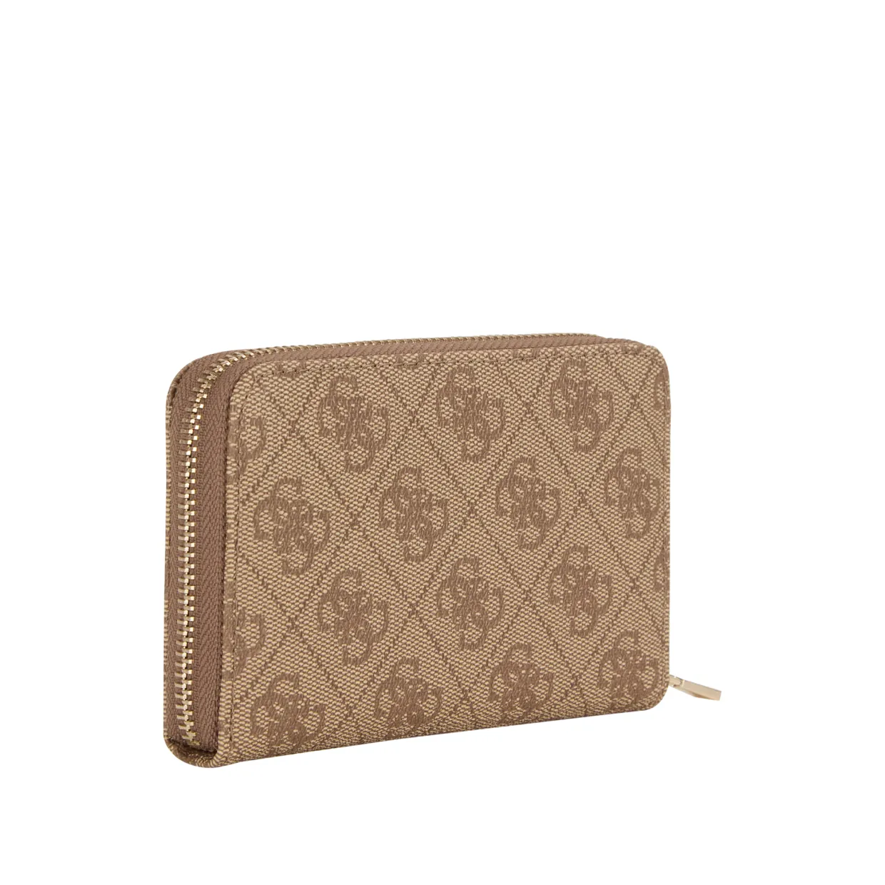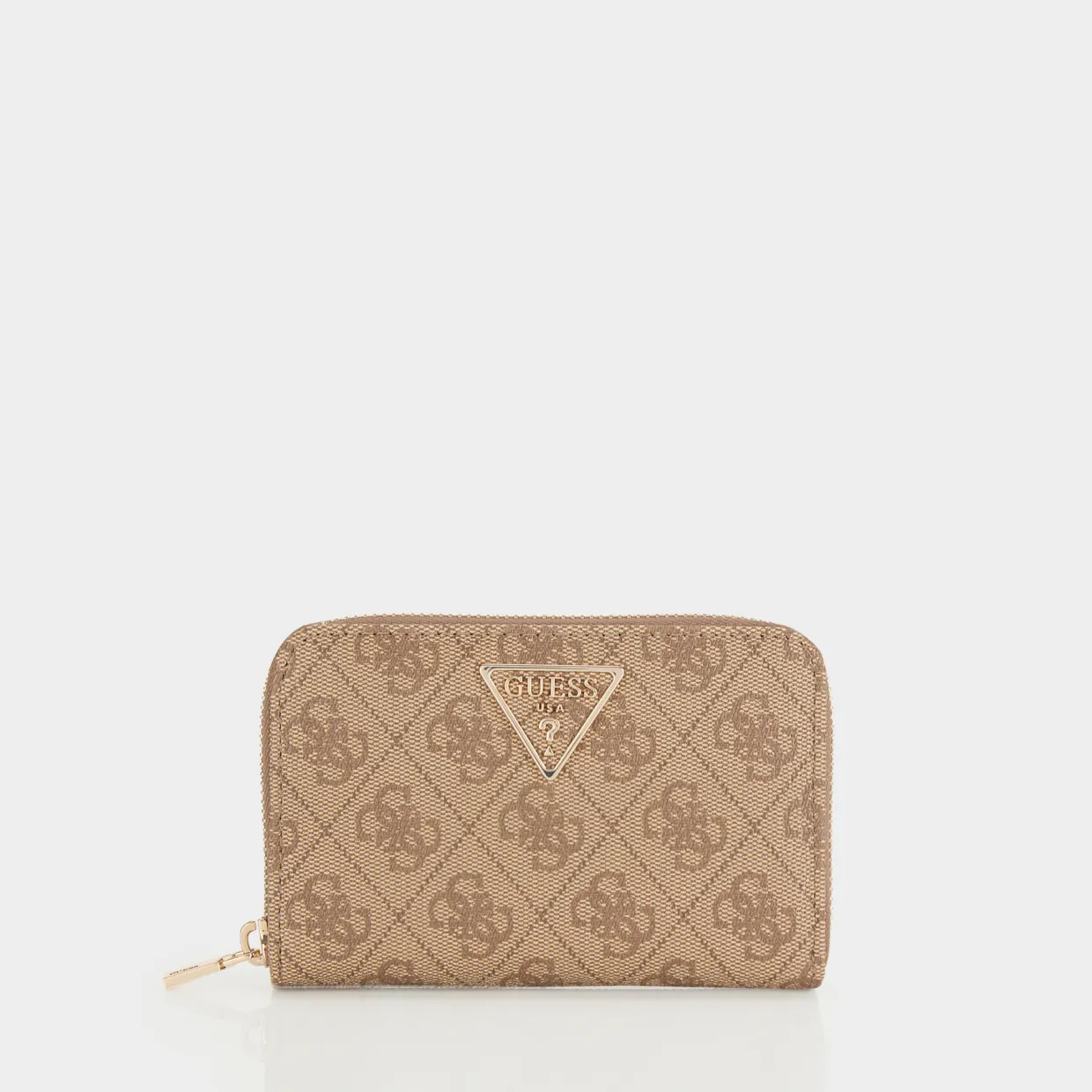 - Zip-around fastening, logo print, internal coin compartment, card slots, gold-toned hardware