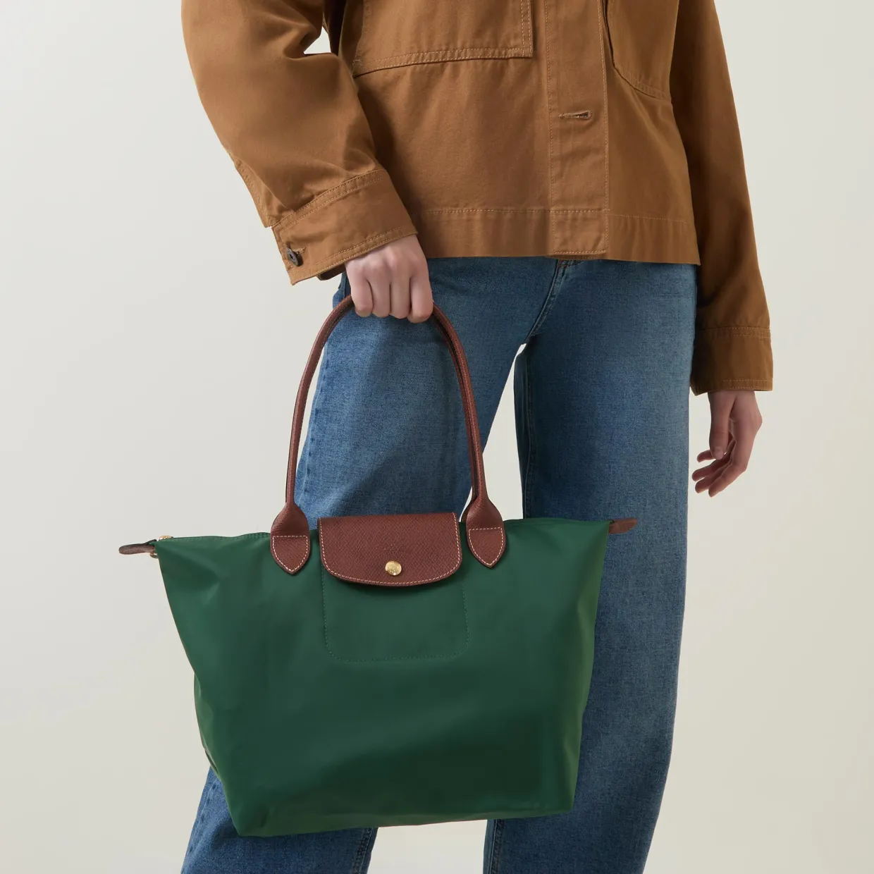 - Carry handles, flap with snap button fastening, top zip closure, leather trim detailing, gold-tone hardware, embossed logo, foldable design