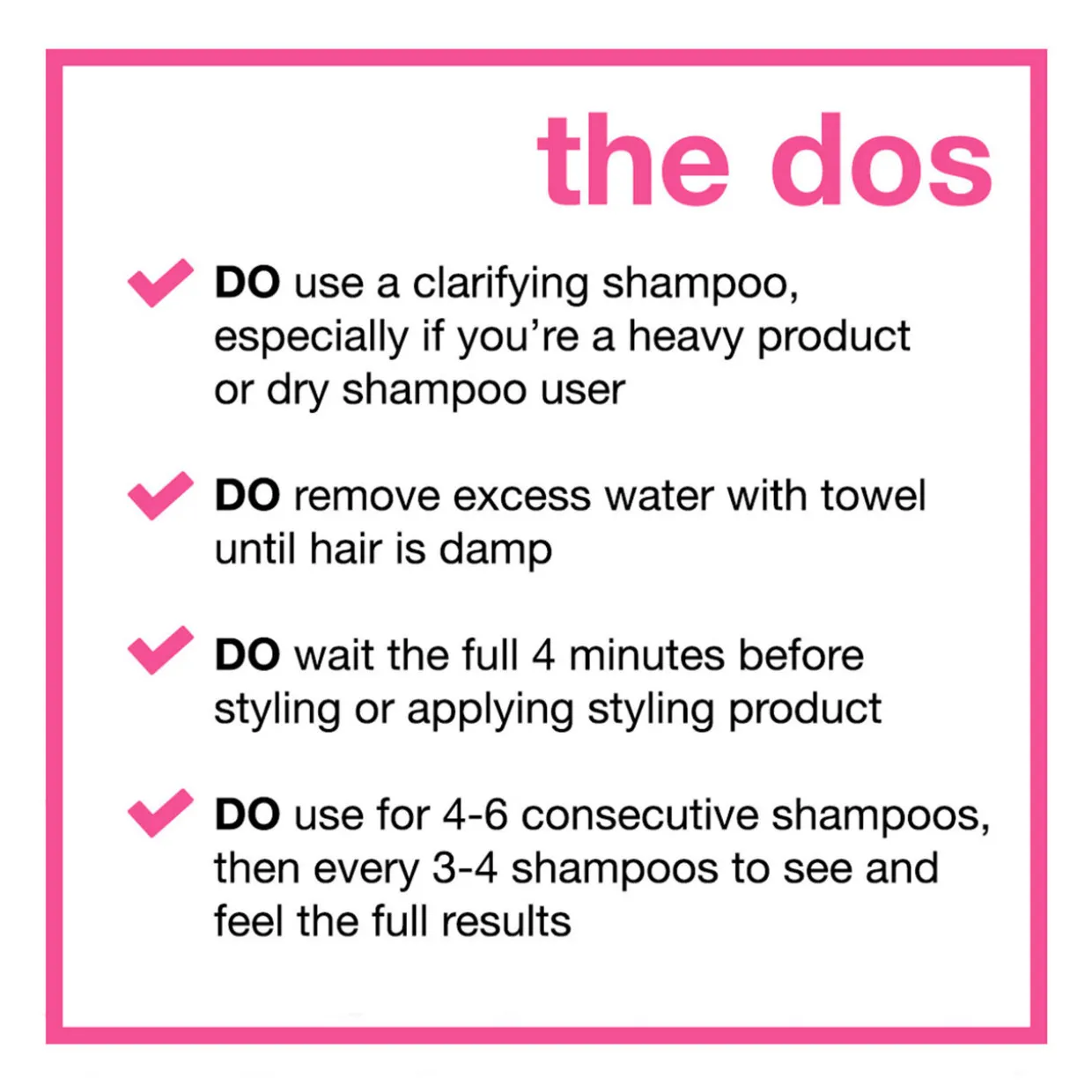 How To Use: In the shower: Shampoo, do not condition. Out of the shower: Towel dry thoroughly. Begin with one pump and add more as needed depending on the length, thickness, and condition. Work evenly into hair from ends to roots, one pump at a time. Let sit for four minutes to activate. Do not rinse out. Style as usual.