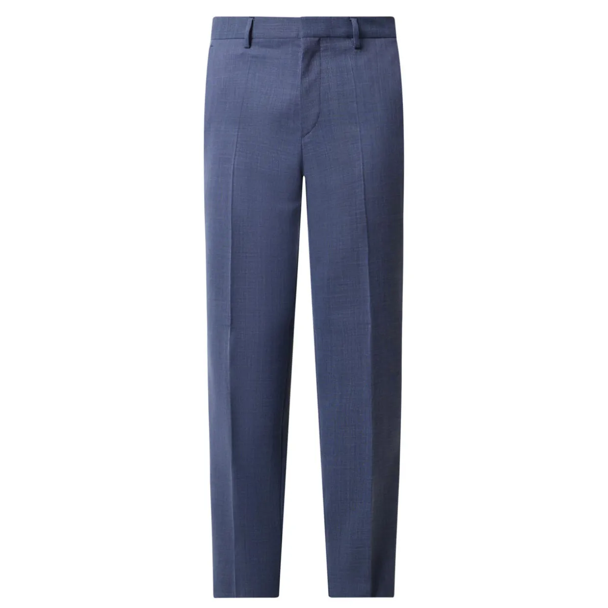 - Hook and eye and fly zipper fastening, belt loops, side entry pockets, rear pockets, pressed creases, textured finish