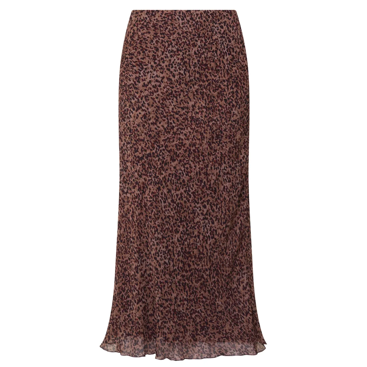 - Midi length, semi-transparent crêpe fabric, flared hemline, leopard print, elasticated waistband