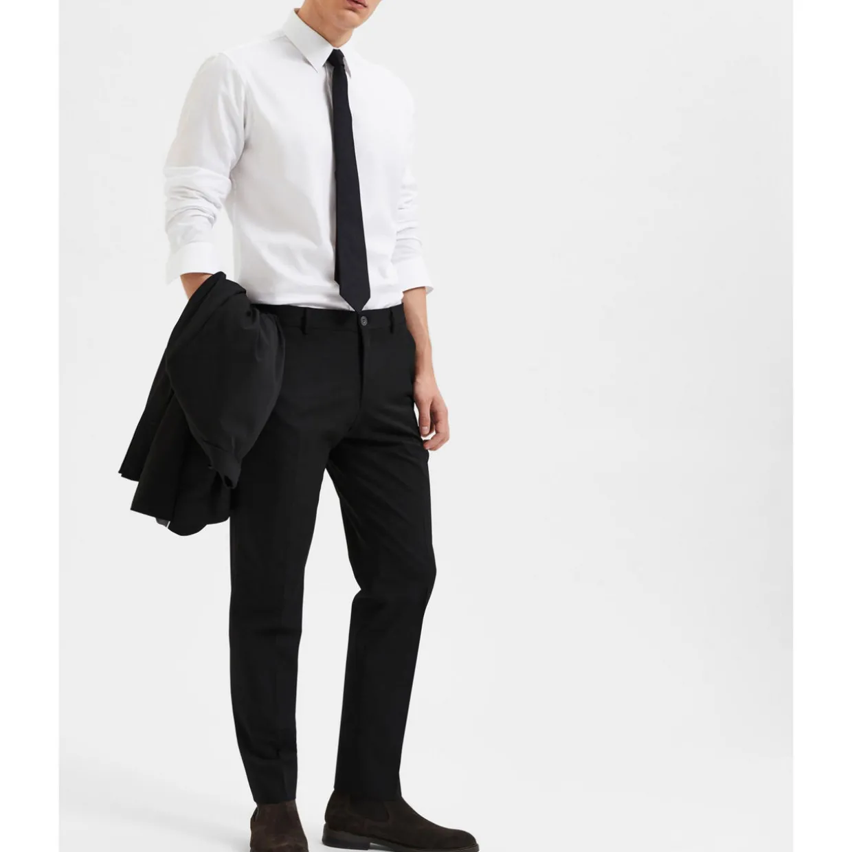 - Regular waist, slim fit, front pleat, button and zip fastening, belt loops, back welt pockets.