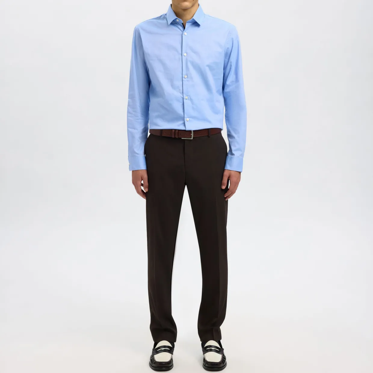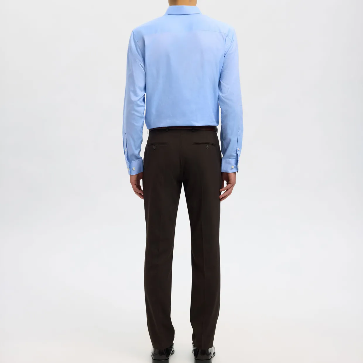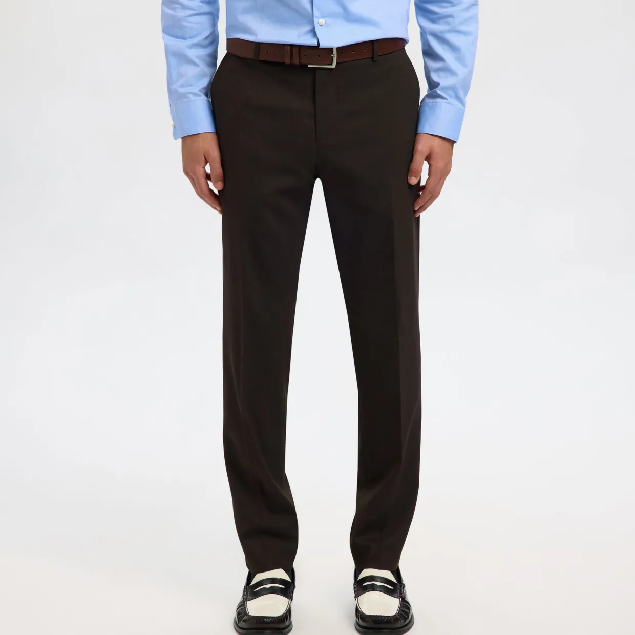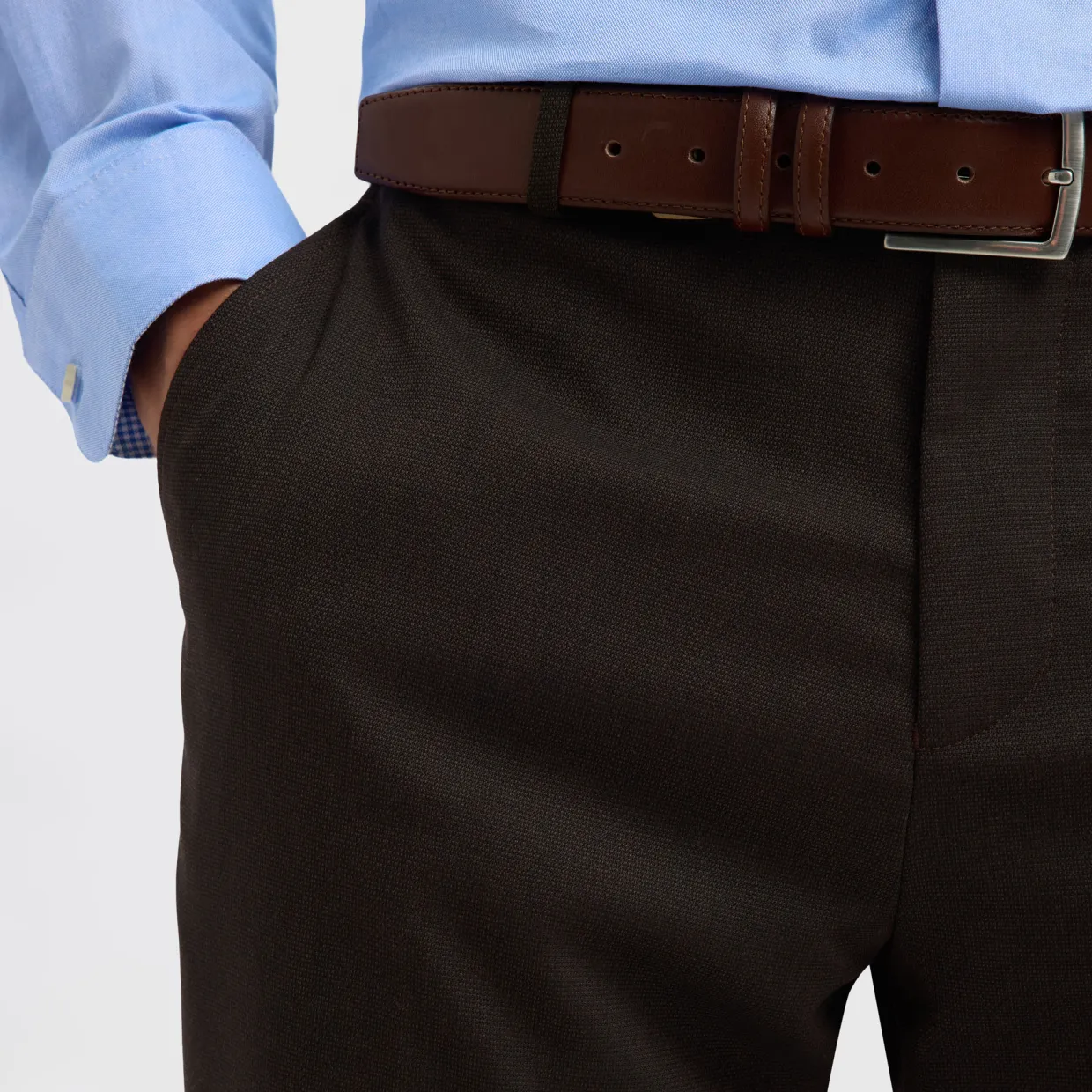 - Textile finish, tailored trousers, zip fly fastening, lining from waist to knee, ironed creases