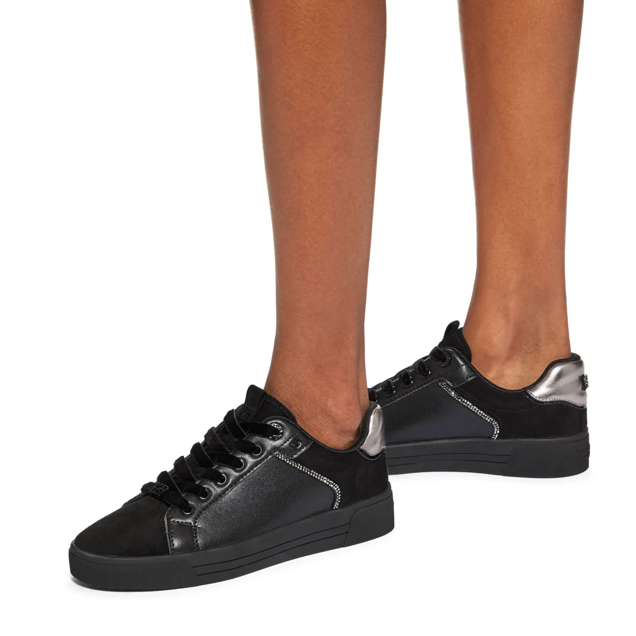 - Microsuede panels, lace-up front, branding details