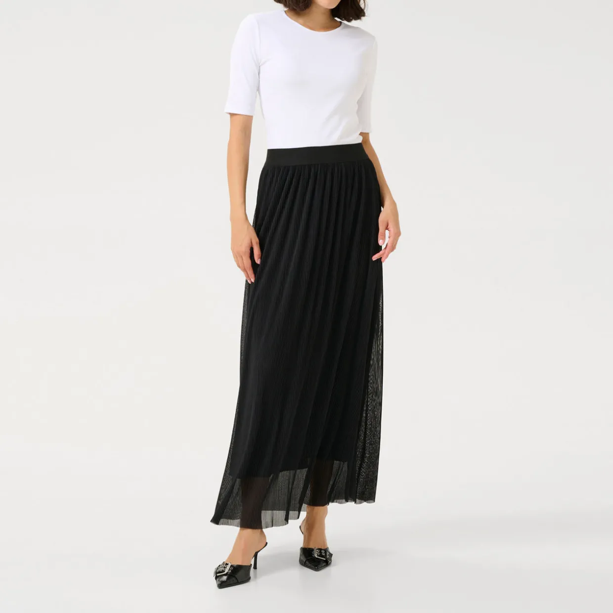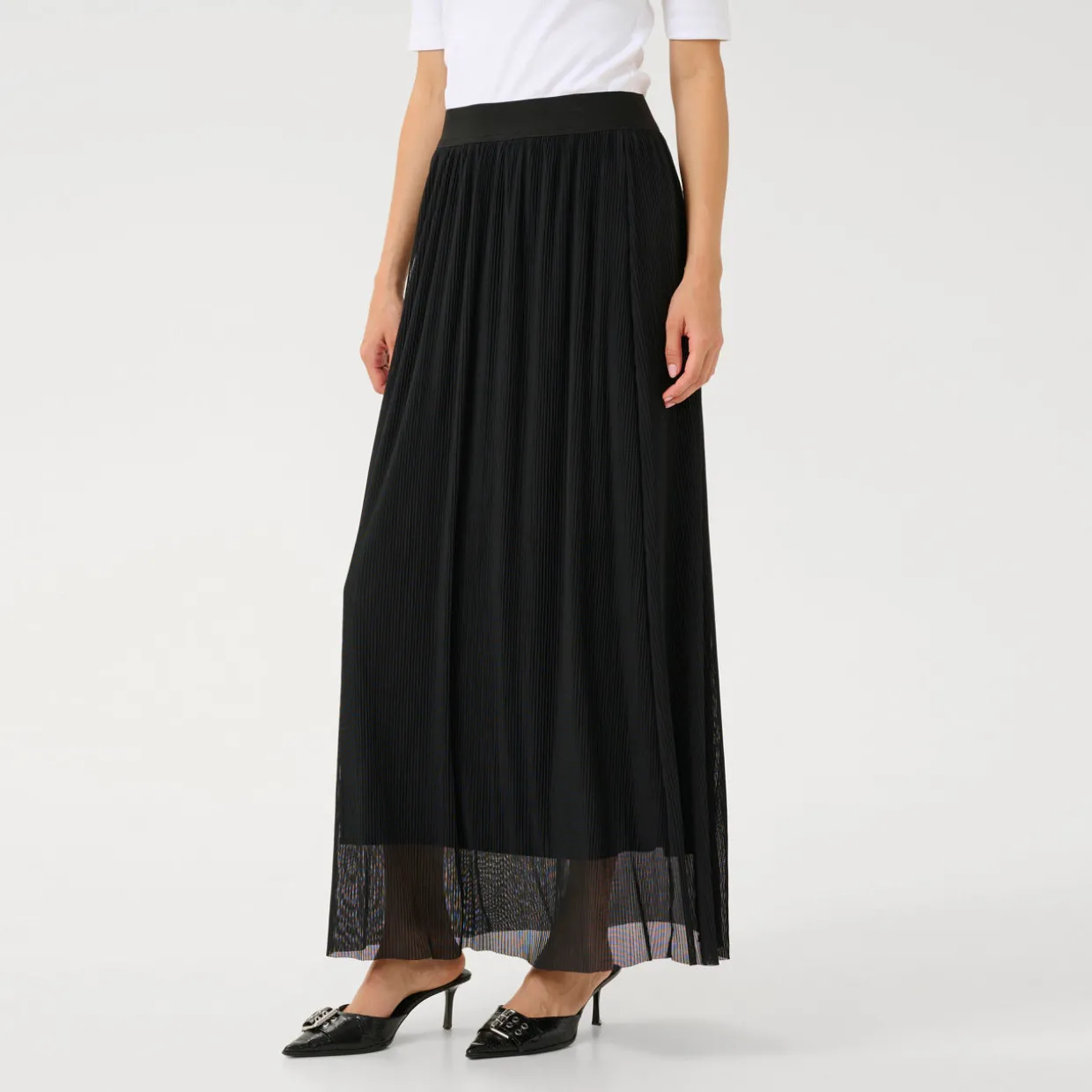 - High-waist, elasticated waistband, A-line silhouette, maxi length, light chiffon fabrication