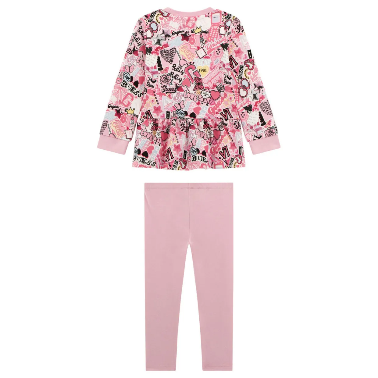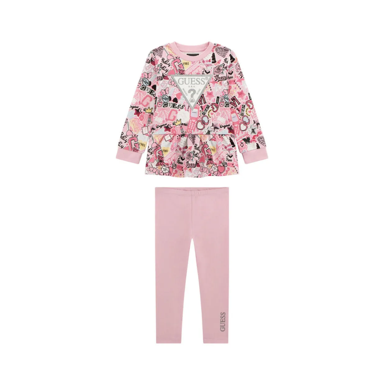 - Top: Printed logo design, triangle logo detail, round neckline, long sleeves. Leggings: Elasticated waistband, brand logo detail