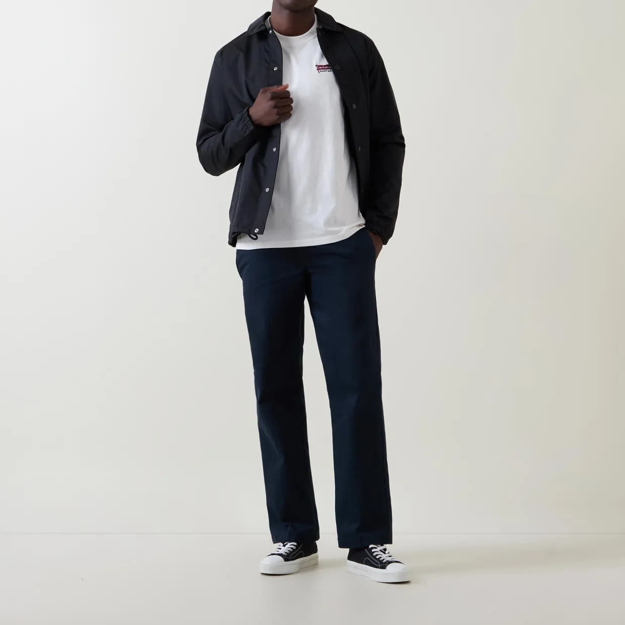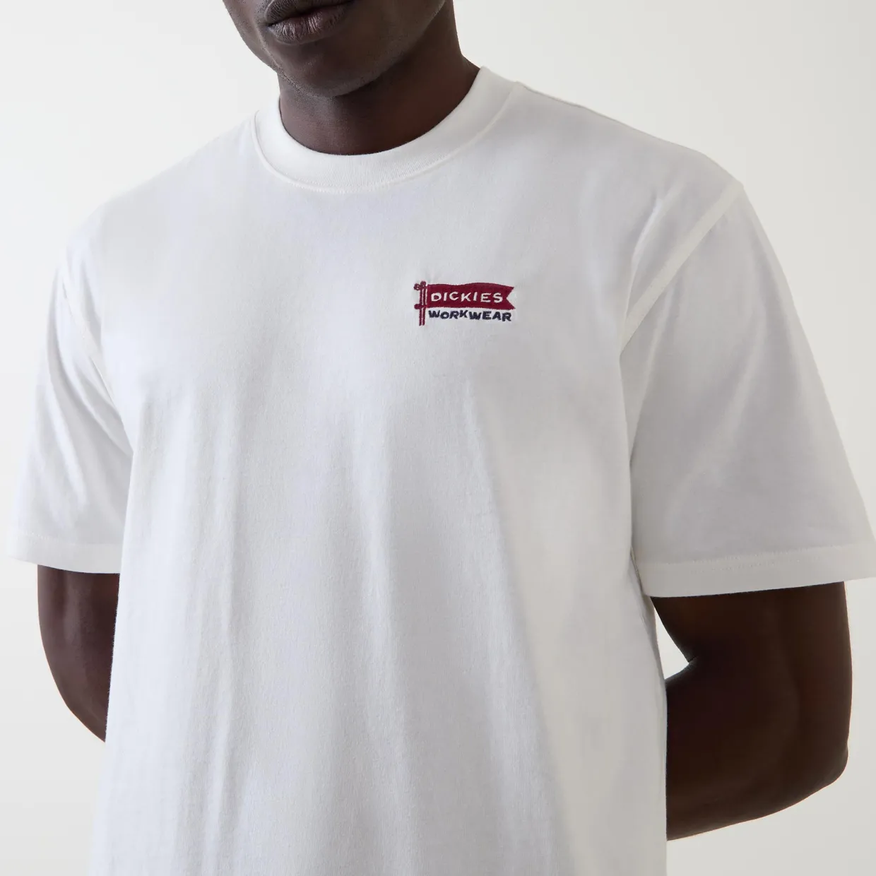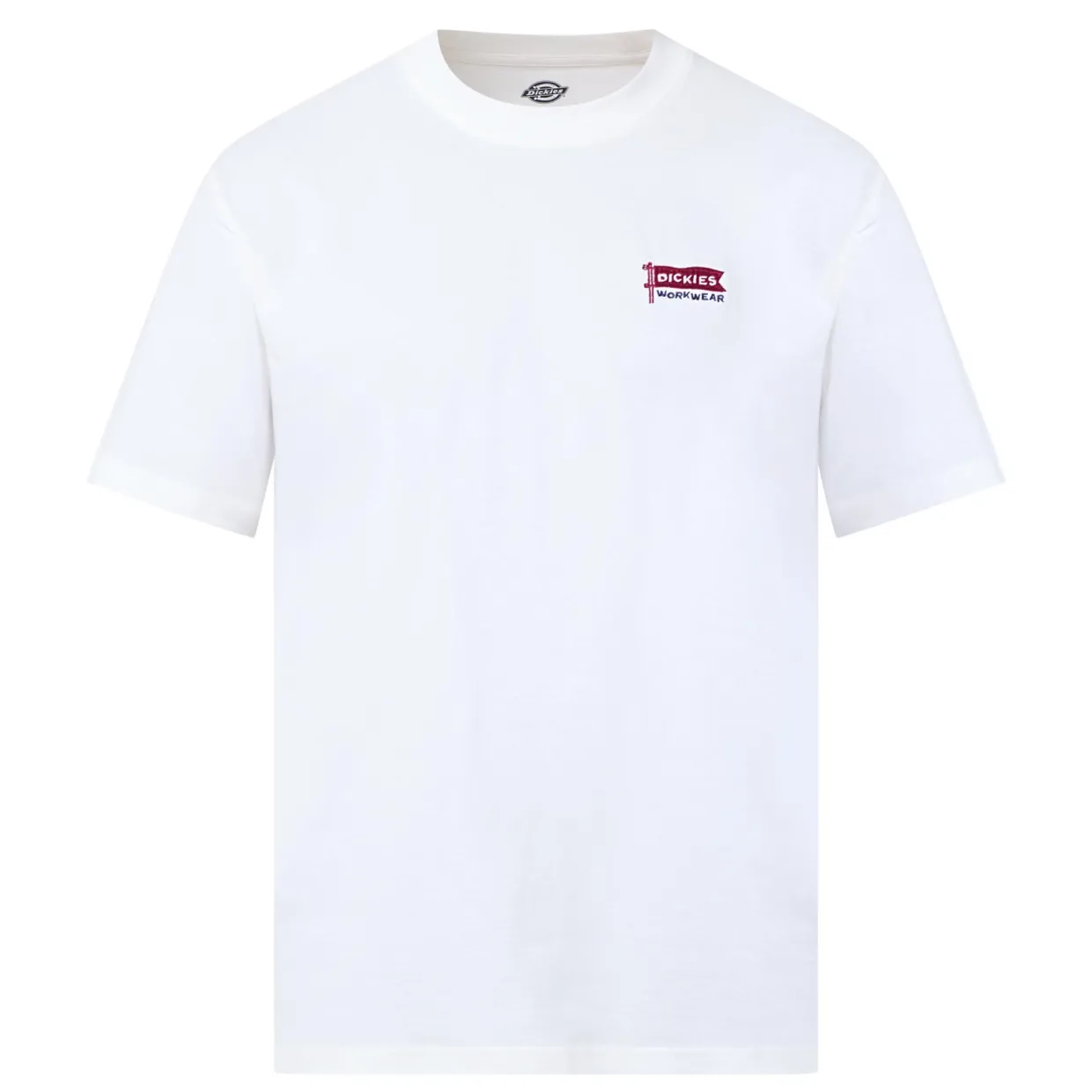 - Crew neckline, short sleeves, dropped shoulders, logo flag detail on the chest, tonal stitching, straight hemline, smooth fabric