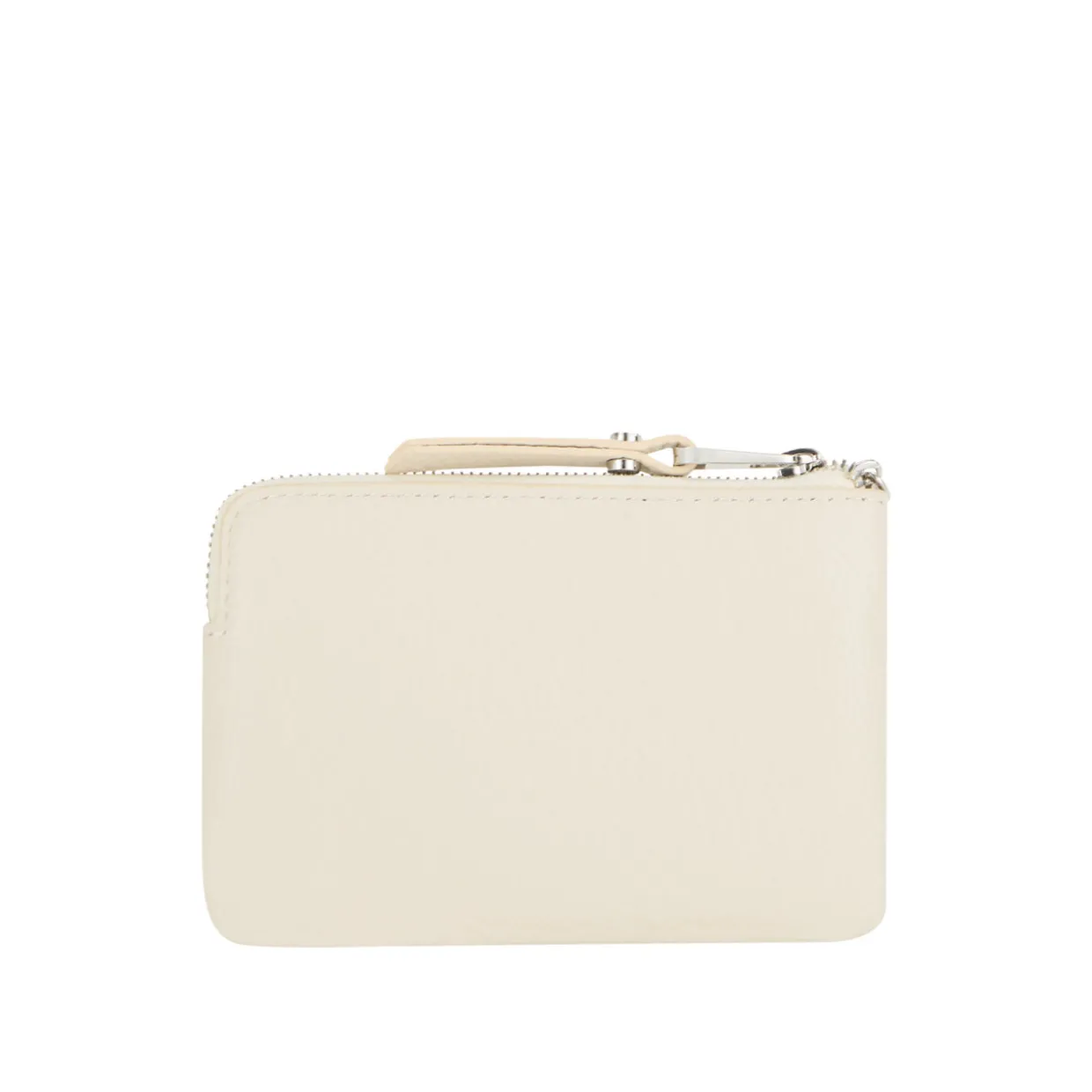 - Top zip fastening, silver-tone hardware, three card slots, one coin compartment, keyring attachment, logo detail, tonal stitching, pebbled leather finish