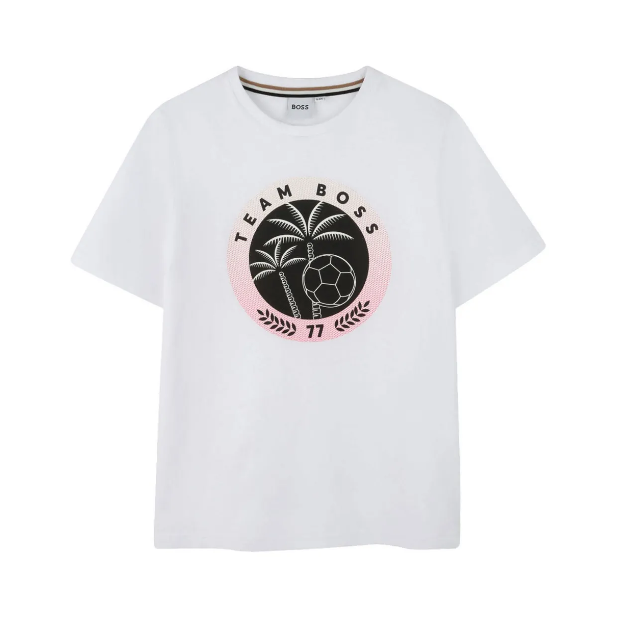 - Crew neck, short sleeves, logo graphic print on the front, woven logo label at side, regular fit